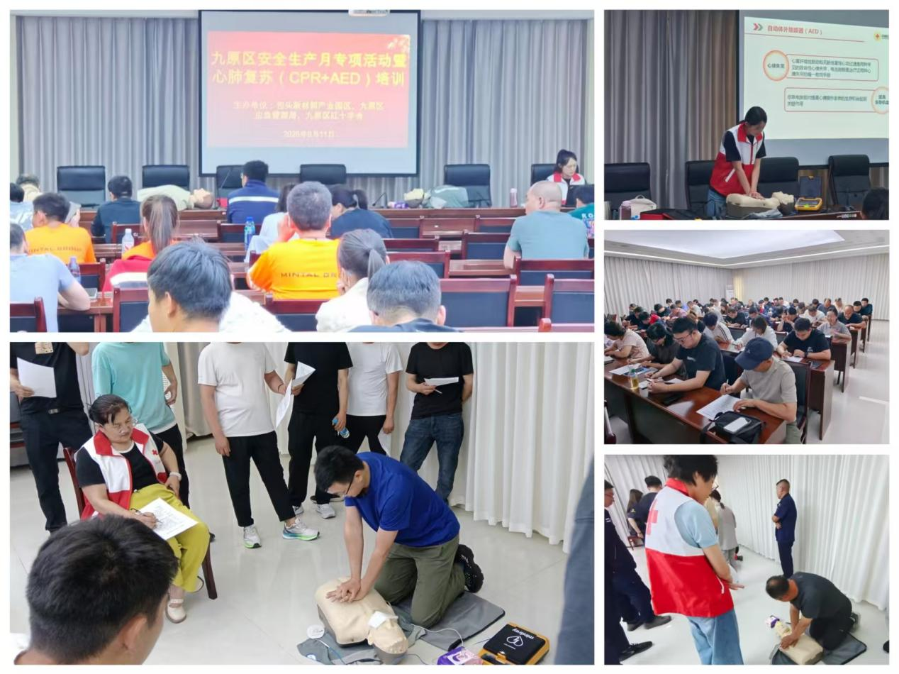 今年6月是全国第24个“安全生产月”。6月11日,九原区应急管理局、九原区红十字会、包头市新材料产业园区联合举办九原区心肺复苏(CPR)与自动体外除颤器(AED)使用专项培训。来自全区72户企业共125名一线从业人员参加了此次培训,并通过考核获得“心肺复苏(CPR+AED)”应急救护员培训证书。
