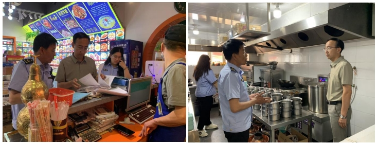 6月17日,区政府副区长袁宇博对辖区祁龙餐饮经营单位开展食品安全检查。此次检查,重点核查了食品经营许可合规性、后厨环境卫生状况、从业人员操作规范性,以及“三防”设施设备配备、餐饮具清洗消毒、食材采购贮存、加工制作等关键环节管理情况。检查过程中,袁宇博副区长要求经营主体严格落实进货查验及索证索票制度,从源头把控食材质量安全,确保食品加工制作各环节符合规范要求。