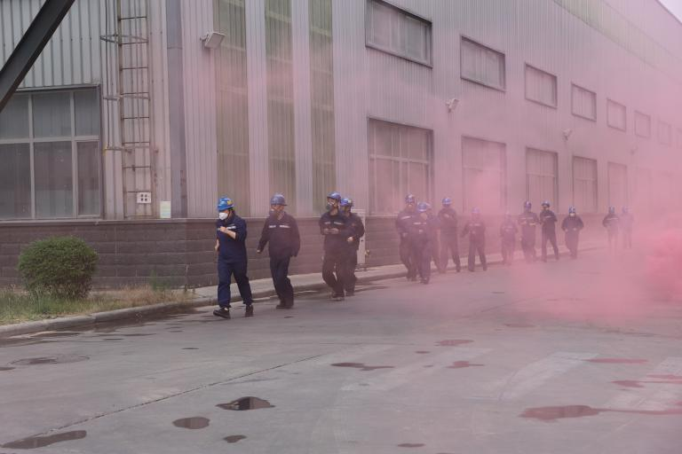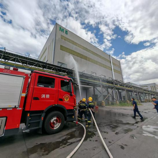 本次演练紧扣“检验预案、锤炼队伍、磨合机制、提升意识、健全体系”五大核心目标,以M5车间东侧天车配电柜因粉尘积聚引发电气线路短路起火为模拟场景,全流程还原了从事故发生、初期应急响应,到互助企业及消防队联动救援、火势扑灭及灾后恢复的完整处置链条。整场演练场景设置真实、环节衔接流畅、指挥调度有序,不仅检验了企业应急处置能力,更展现出企业员工扎实的风险防范意识与自救互救技能,切实达到预期效果。