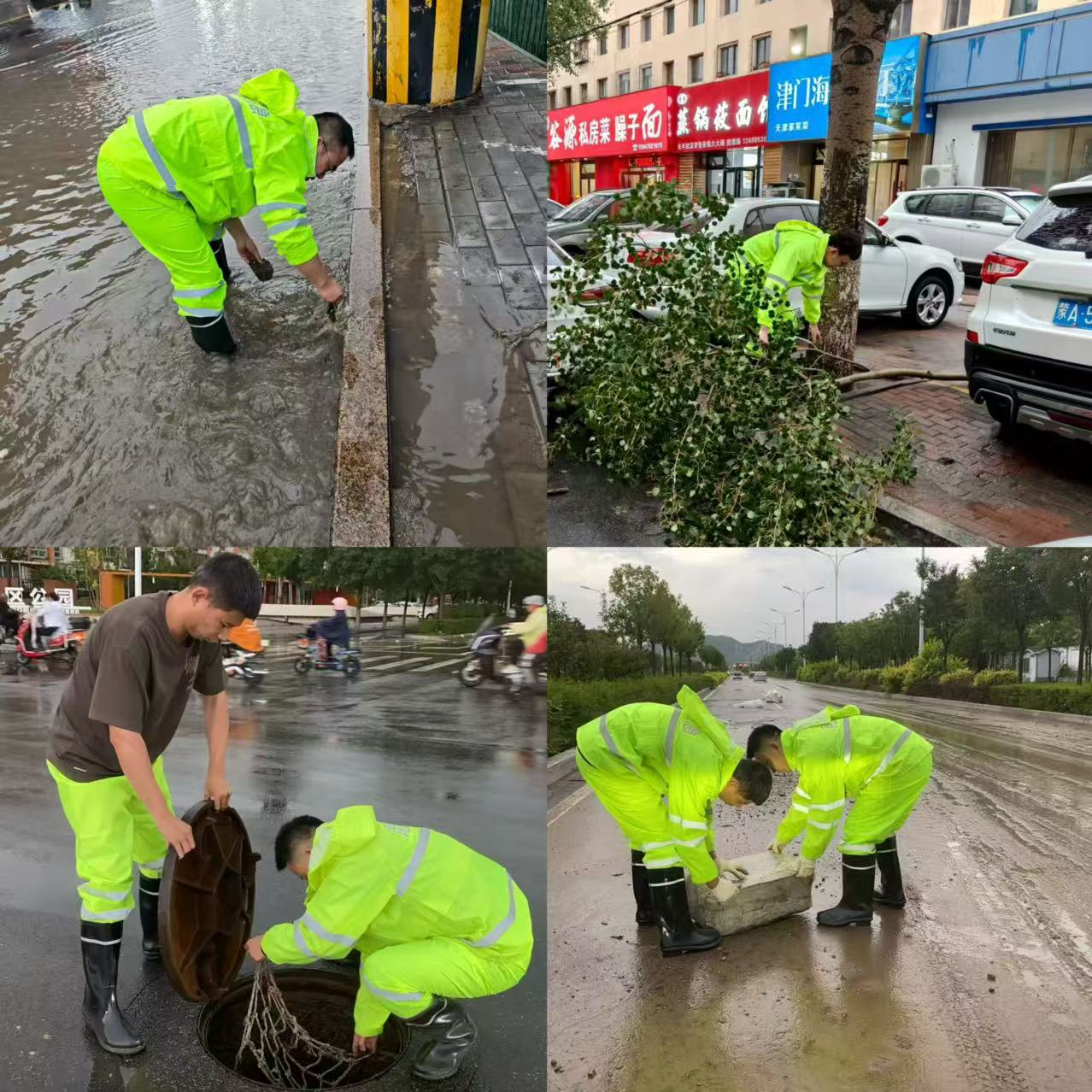清淤除障,抢通生命线。暴雨导致多处道路严重淤堵、积水内涝。应急队员们争分夺秒,冒雨奋战,利用铁锹等工具,没有工具就用手挖,全力清理堵塞下水道的杂物、淤泥和倒伏树木。他们奋力疏通排水通道,抢通受阻道路,为救援和群众出行开辟安全通道,最大限度降低内涝影响。