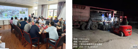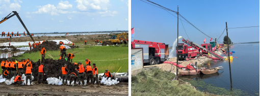 以“抢”为要,全力以赴抢险加固。面对哈素海退水渠沿线溃口对临近重要目标设施造成严重威胁情况,土右旗应急管理局全面严格落实旗委、旗政府抗洪抢险安排和抢险攻坚行动要求,积极向自治区防汛指挥部、包头市防汛指挥部请求增援,调集旗级以上武警、民兵、消防等专业救援力量1.4万人次;组织投入旗级消防、森林草原扑火大队、城管大队、蓝天救援队、鹿城奉献公益协会等救援力量1.8万人次。土右旗应急管理局高效统筹调配抢险物资和装备,累计调用砂石、土方14.6万立方米;编织袋65.3万条、“两布一膜”6.28万平方米、彩条布8.97万平方米、塑料布4.5万平方米、吨包5.4万个、钢管5763根、应急照明灯(含无人机照明)25台(架)、铅丝8.6吨、格宾网片4350片等60余类物资;调用投入长臂挖掘机、装载机、自卸车、打桩机、排水设备等机械10,830台次,动用冲锋舟运输物资1330台次,成功封堵哈素海退水渠和围堤溃口3处,修筑4.8公里围堤背水侧戗台,加固哈素海退水渠堤坝超8公里,打赢了保卫重要目标设施防汛抢险硬仗。