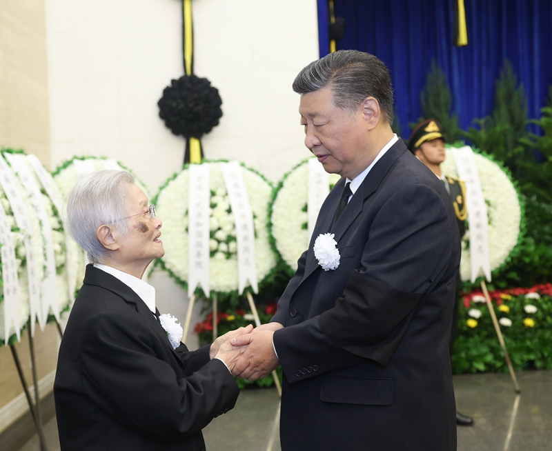 9月25日,任建新同志遗体在北京八宝山革命公墓火化。习近平、李强、赵乐际、王沪宁、蔡奇、丁薛祥、李希、韩正等前往八宝山送别。这是习近平与任建新亲属握手,表示深切慰问。