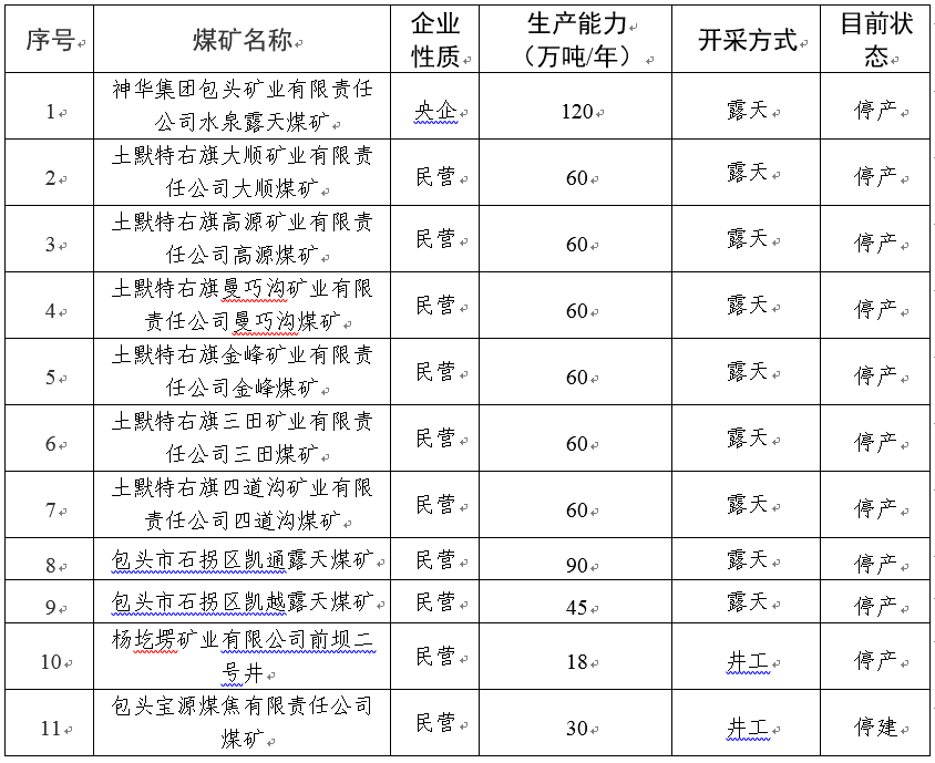关于包头市煤矿基本情况的公告