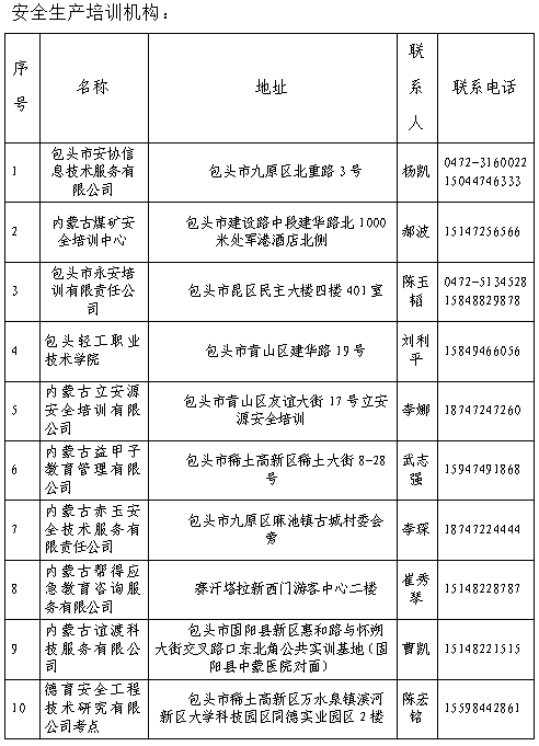 为进一步加强和规范安全生产培训机构、考试点管理,按照《开展安全生产资格证书涉假与特种作业人员安全技术培训考核专项治理异地交叉执法检查的通知》《安全生产培训机构基本条件》(AQ8011-2023)文件要求,目前我市10家培训机构和3家考试点符合开展安全生产培训和安全生产考试的条件。现公示如下: