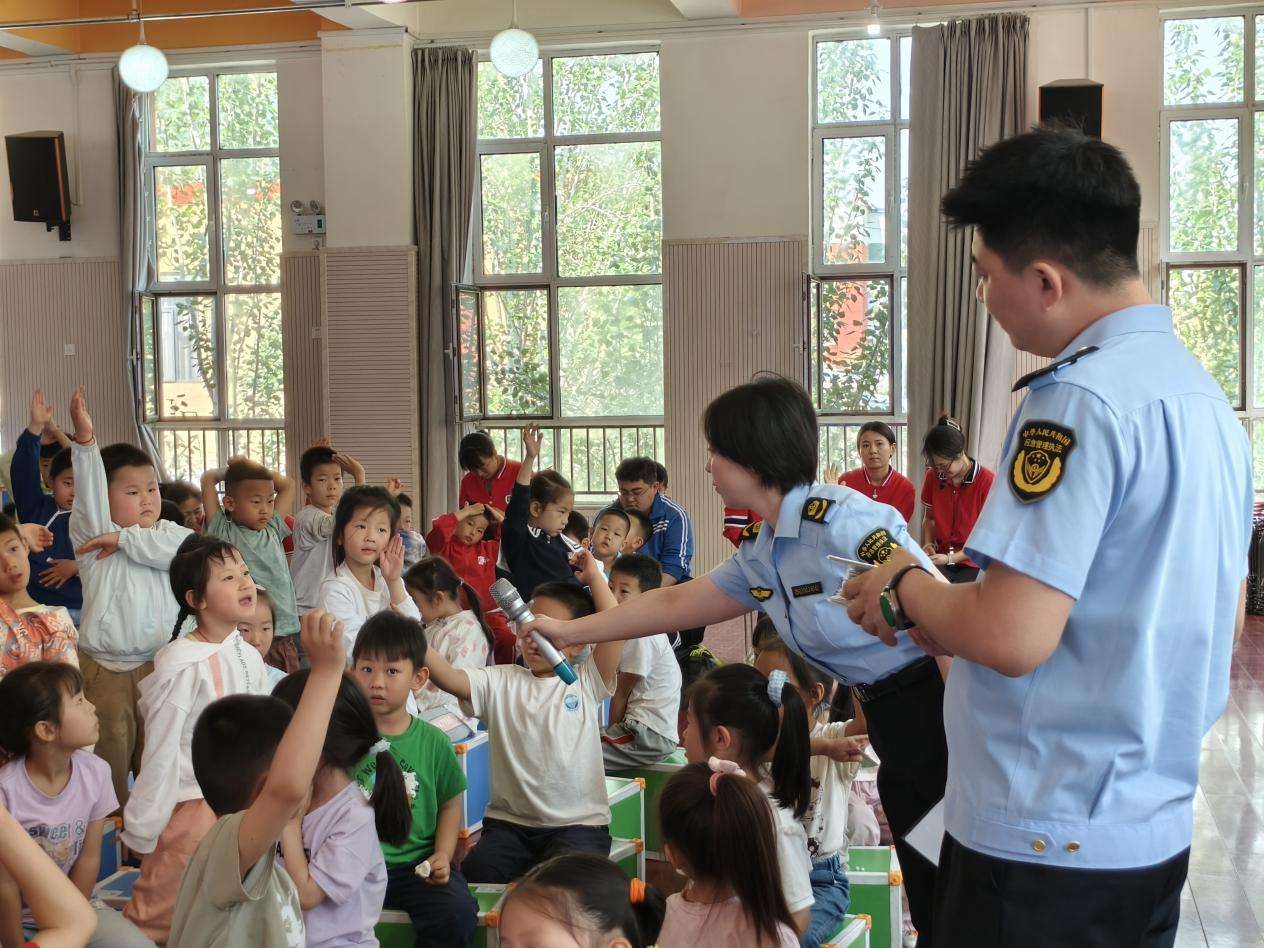 地震局宣传员化繁为简,将专业术语转化为生动童谣。“地震来了不要慌,紧急避险很重要……”同时,配合简单易懂的动作示范,让孩子们直观了解防震避险要点。在问答环节,小朋友们争相举手,积极回答问题,稚嫩的声音中满是对安全知识的浓厚兴趣,现场气氛热烈活泼。