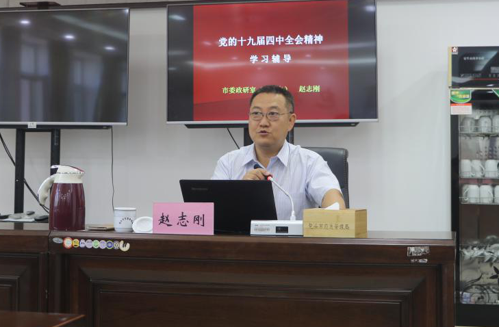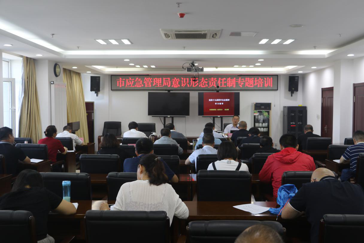 为深入学习贯彻党的十九届四中全会精神,加强意识形态责任制落实,2020年8月26日上午,市应急管理局邀请自治区“草原儿女心向党”巡回宣讲团成员、自治区“理论轻骑兵”基层示范宣讲团成员、市委政策研究室(改革办)赵志刚副主任,以《以制度建设为抓手,强化意识形态建设》为题对全局党员干部进行了专题授课辅导,全局党员干部60余人参加了授课。
