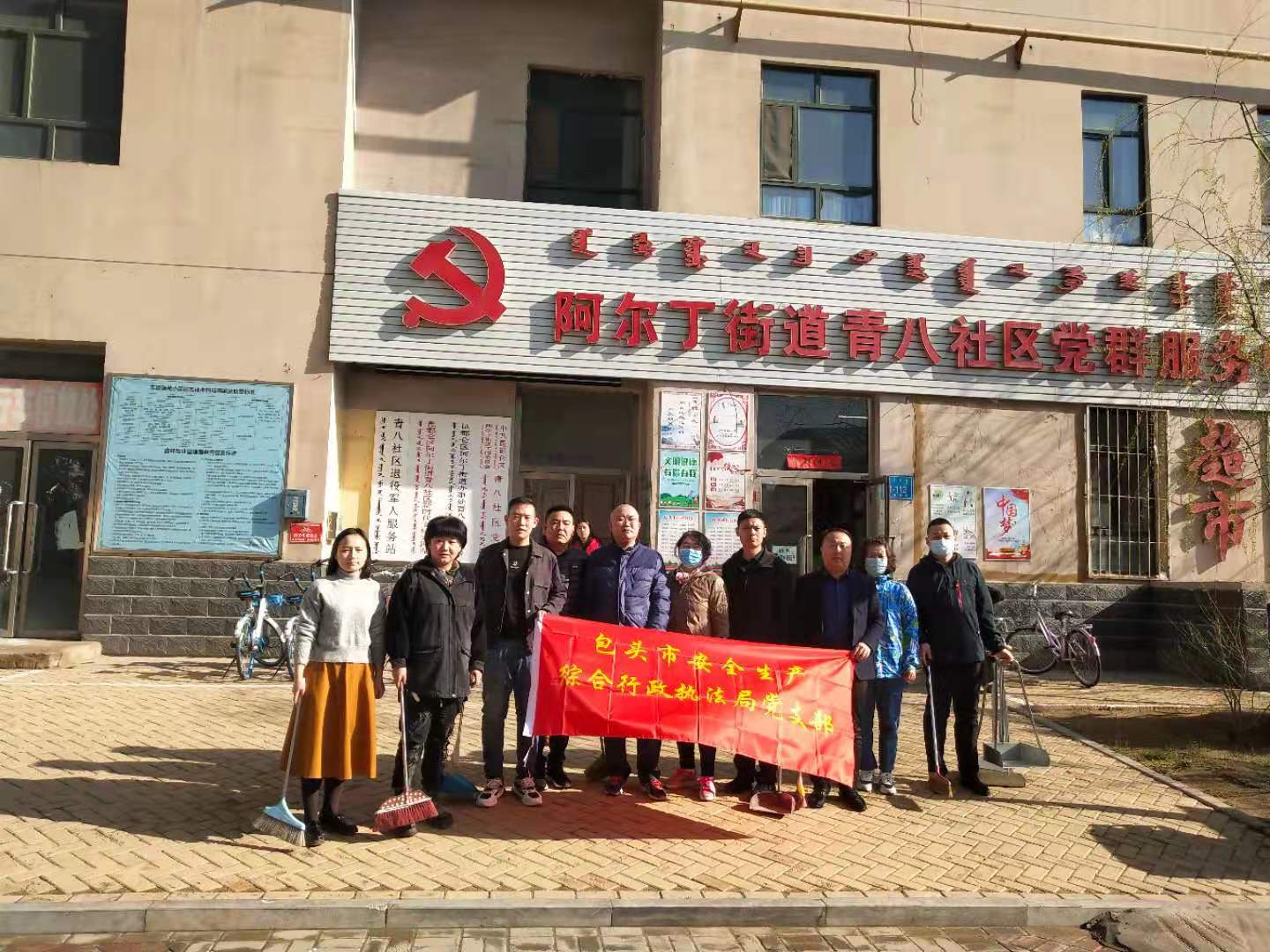 为深入开展党史学习教育,包头市安全生产综合行政执法局党支部把学习党史转化为提升工作的动力,坚持做到“学、思、力、行”,用真心,爱心,诚心为民办实事、办好事。2021年4月7日上午,执法局党支部深入包联青八社区开展创城志愿服务活动,积极配合社区为文明城市创建整改提升助力做贡献。