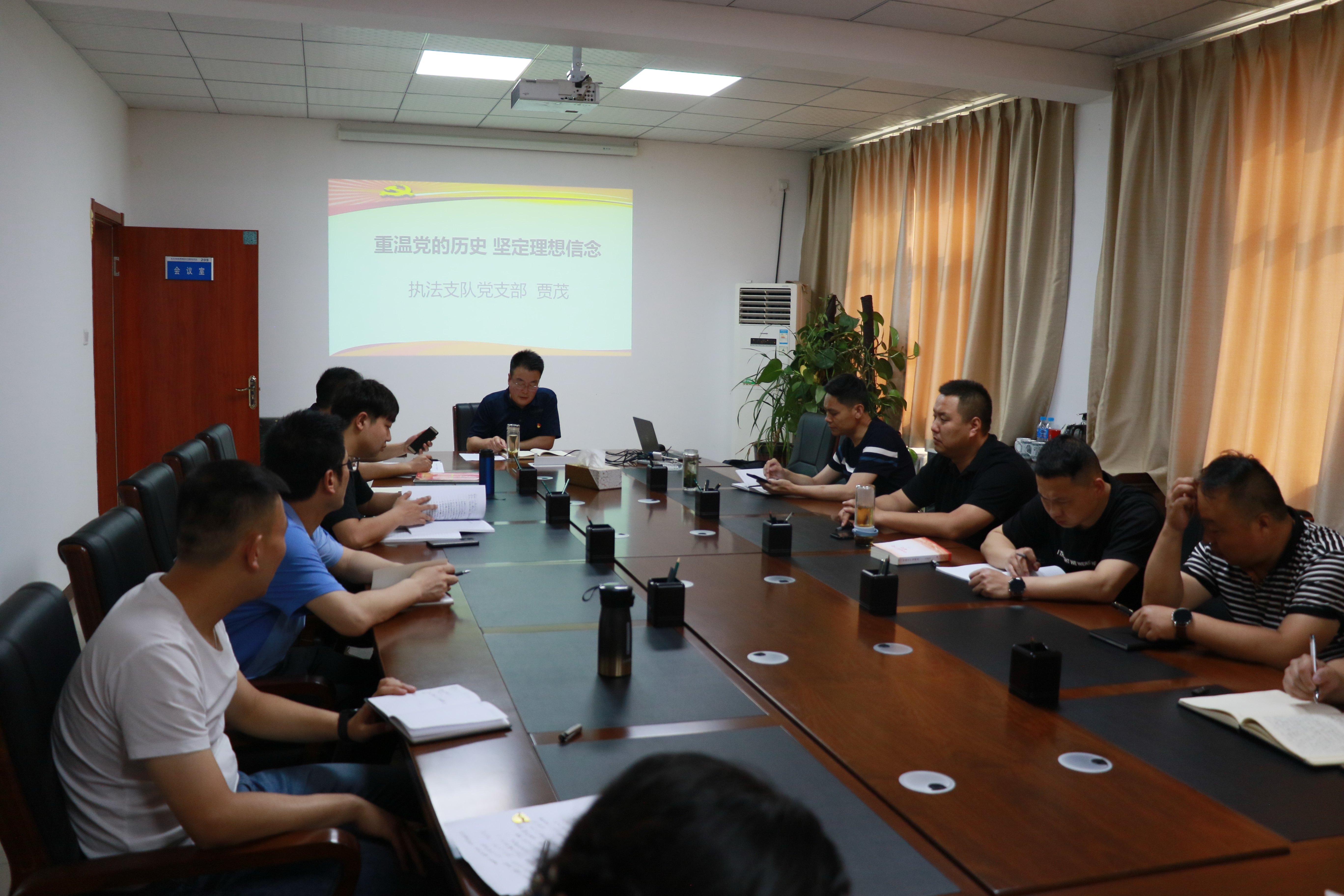 为进一步推进党史学习教育,按照支队党史学习教育计划,2021年6月25日,支队党支部书记贾茂以“重温党的历史 坚定理想信念”为题,结合自身学习心得体会,为执法支队全体党员干部职工讲授专题党课。