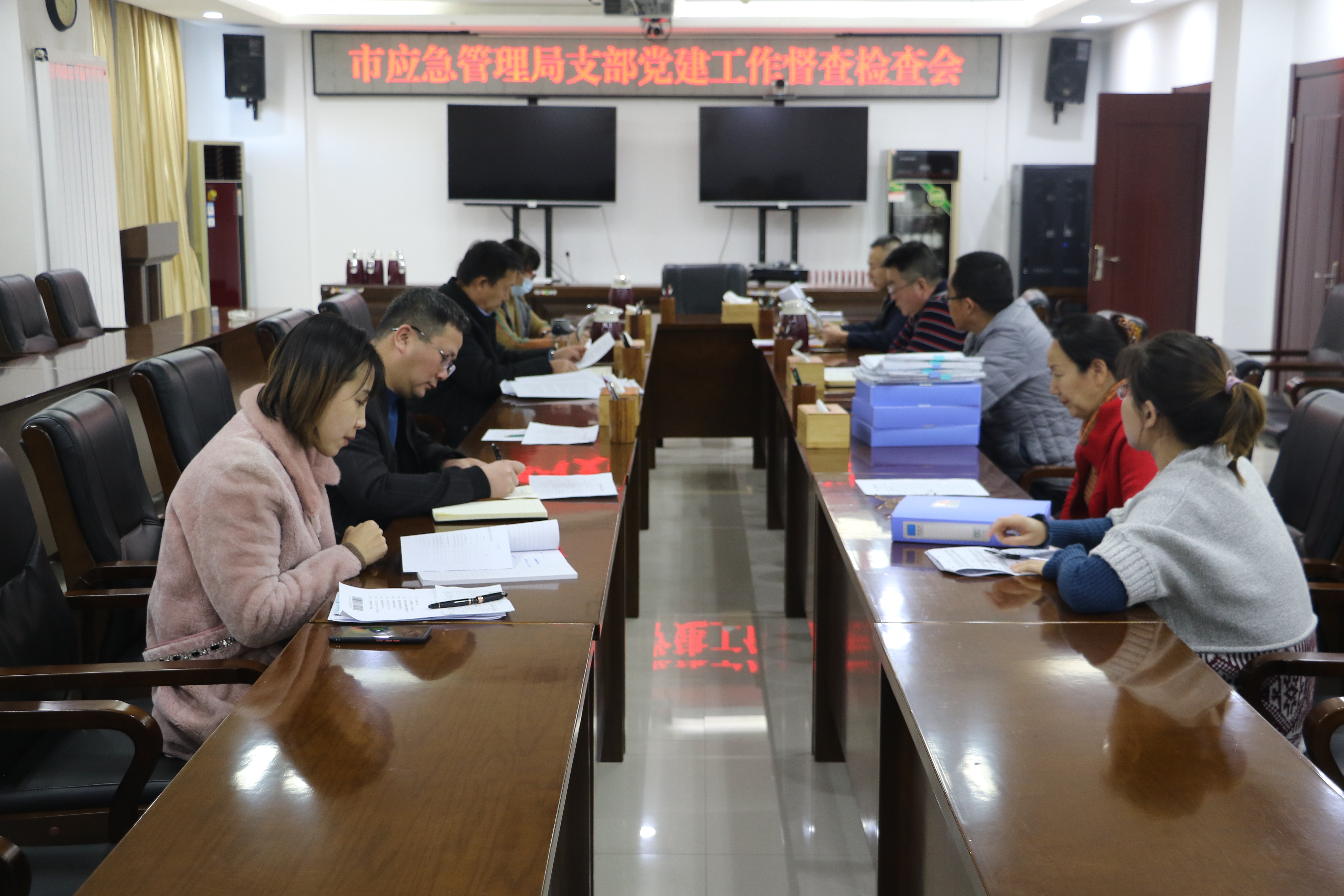 为进一步加强支部标准化、规范化建设,推进机关党建工作落到实处,确保全面完成2021年党建工作目标,2021年12月16日,市应急管理局机关党总支组织各支部开展党建工作检查。局党委成员、副局长武喜乐,机关党总支专职副书记、委员,各党支部书记员参加了检查。