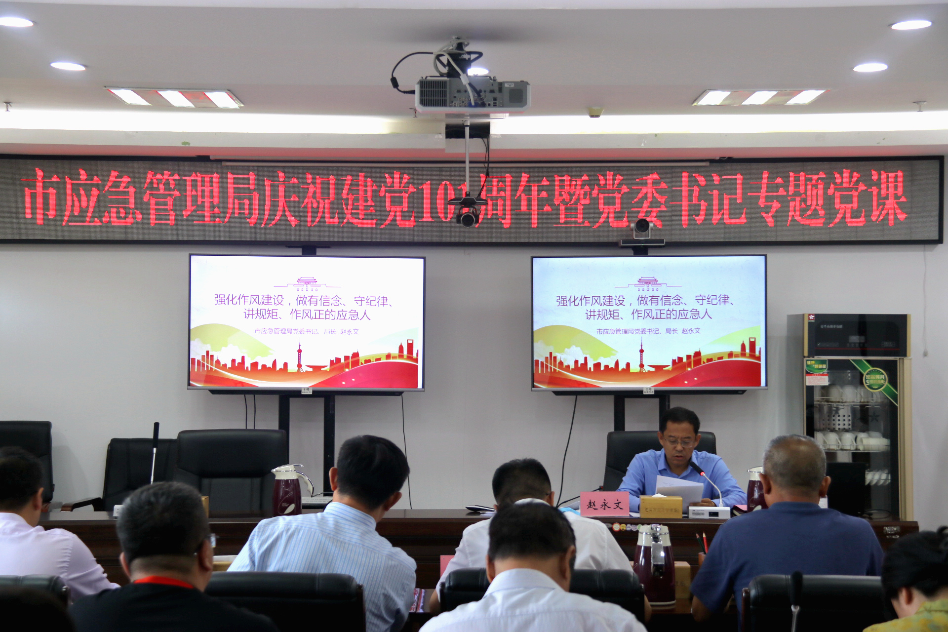 6月30日下午,市应急管理局召开建党101周年庆祝大会暨党委书记专题党课,局党委书记、局长赵永文主持会议。市应急管理局全体党员干部60余人参加了会议。