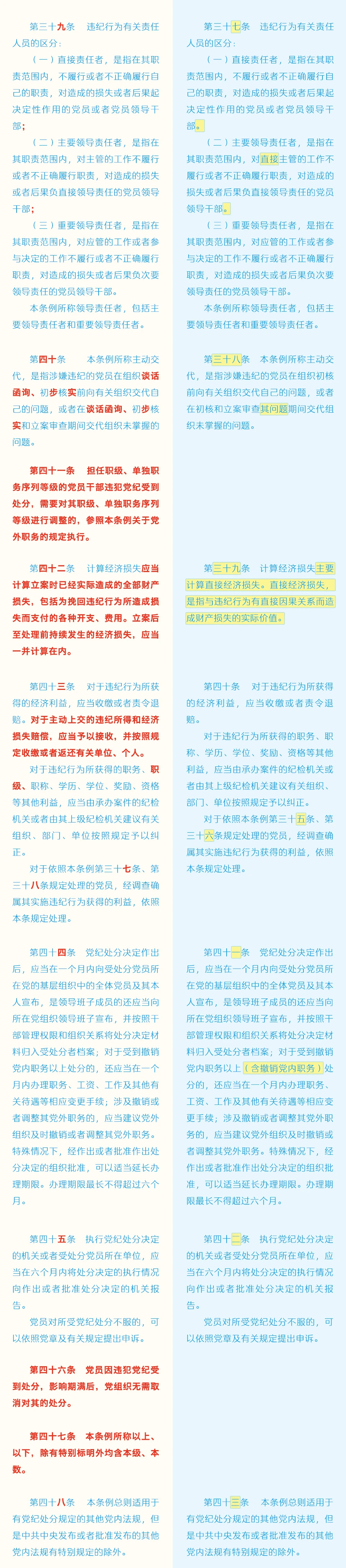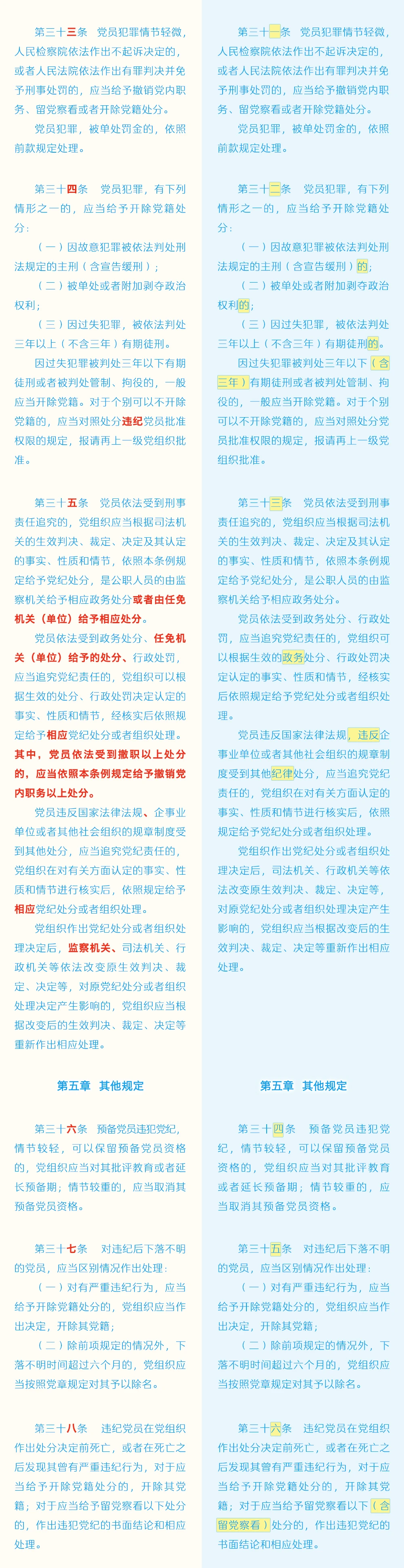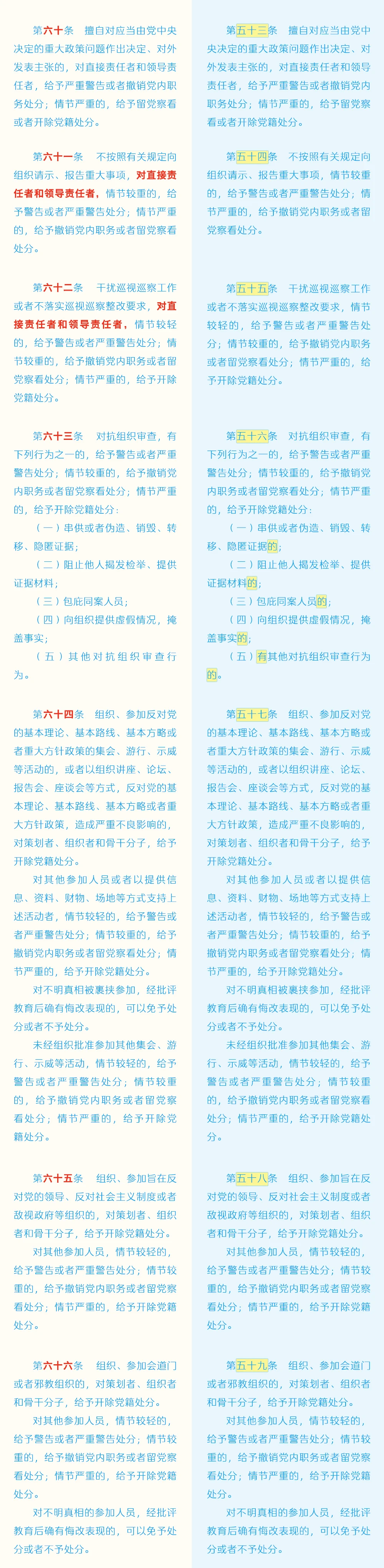 《中国共产党纪律处分条例》修订条文对照表