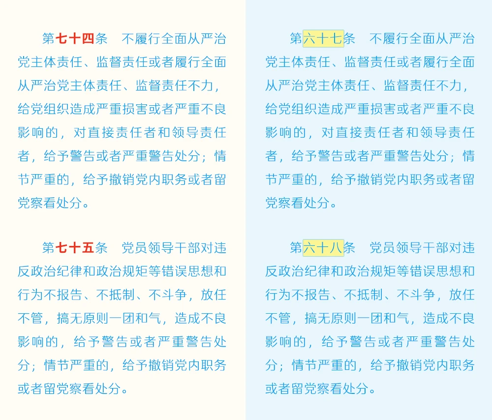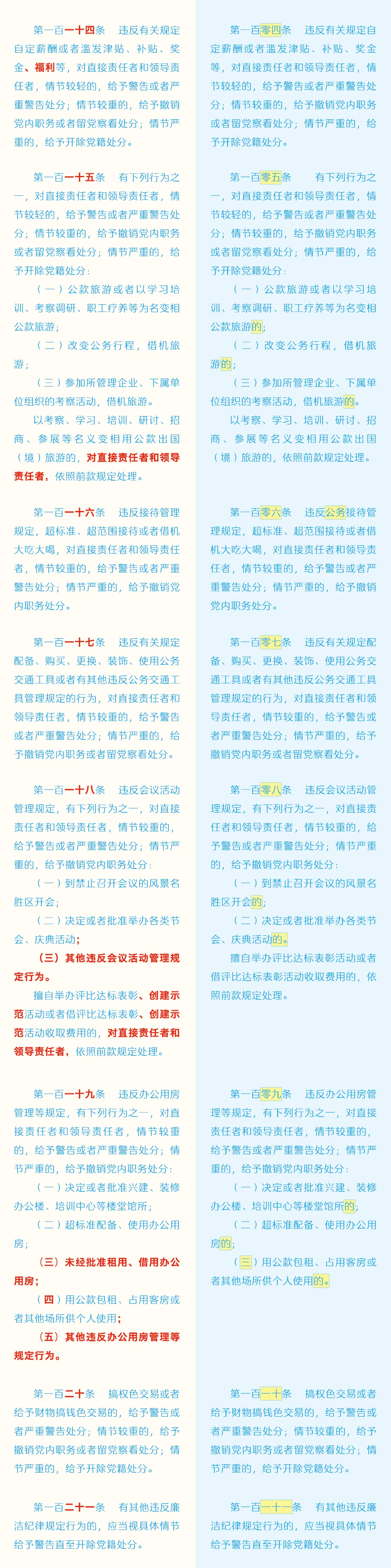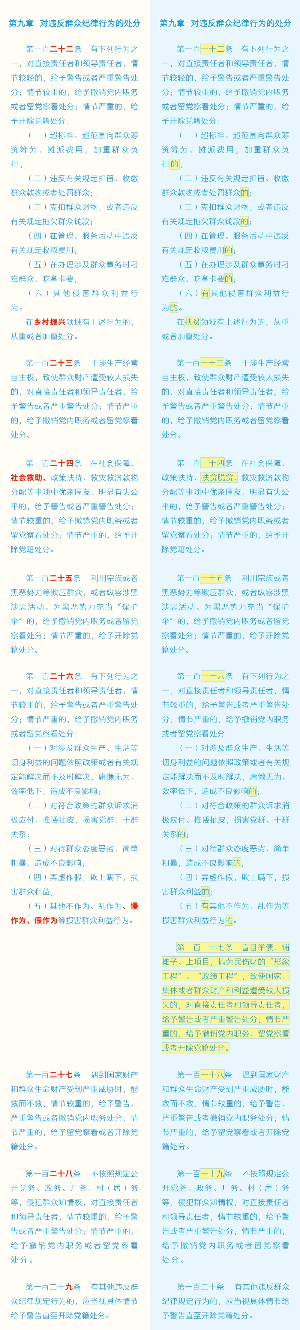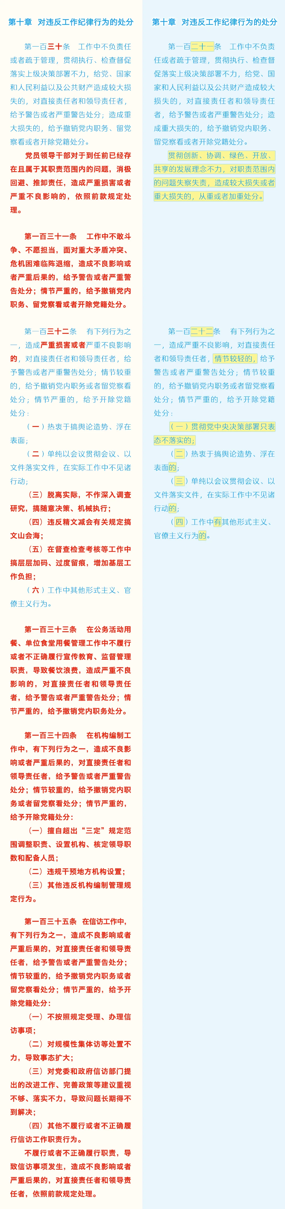 《中国共产党纪律处分条例》修订条文对照表