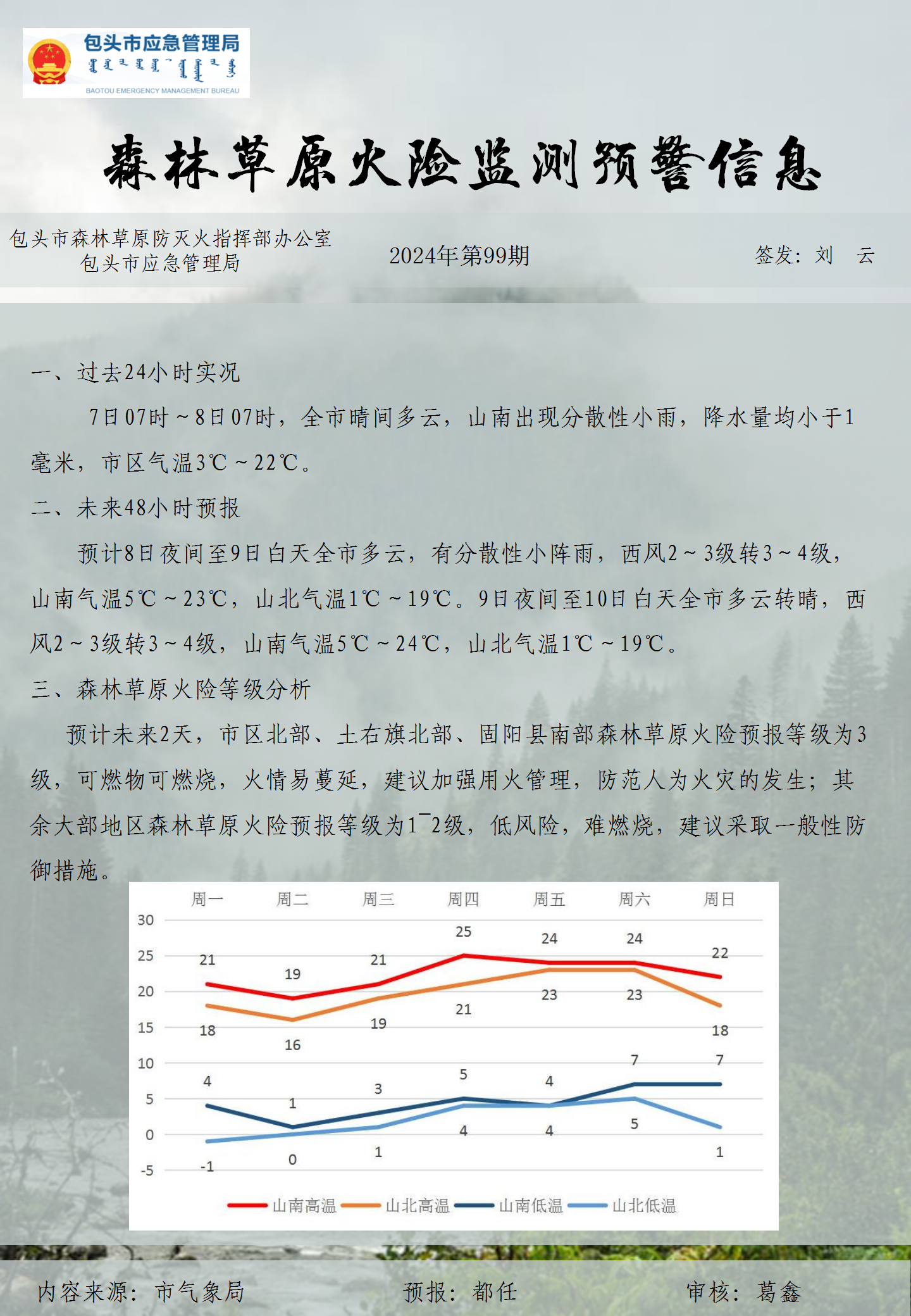 森林草原火险监测预警信息第99期