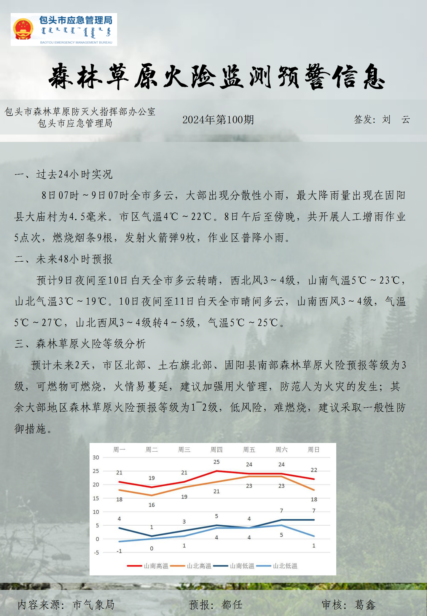 森林草原火险监测预警信息第100期