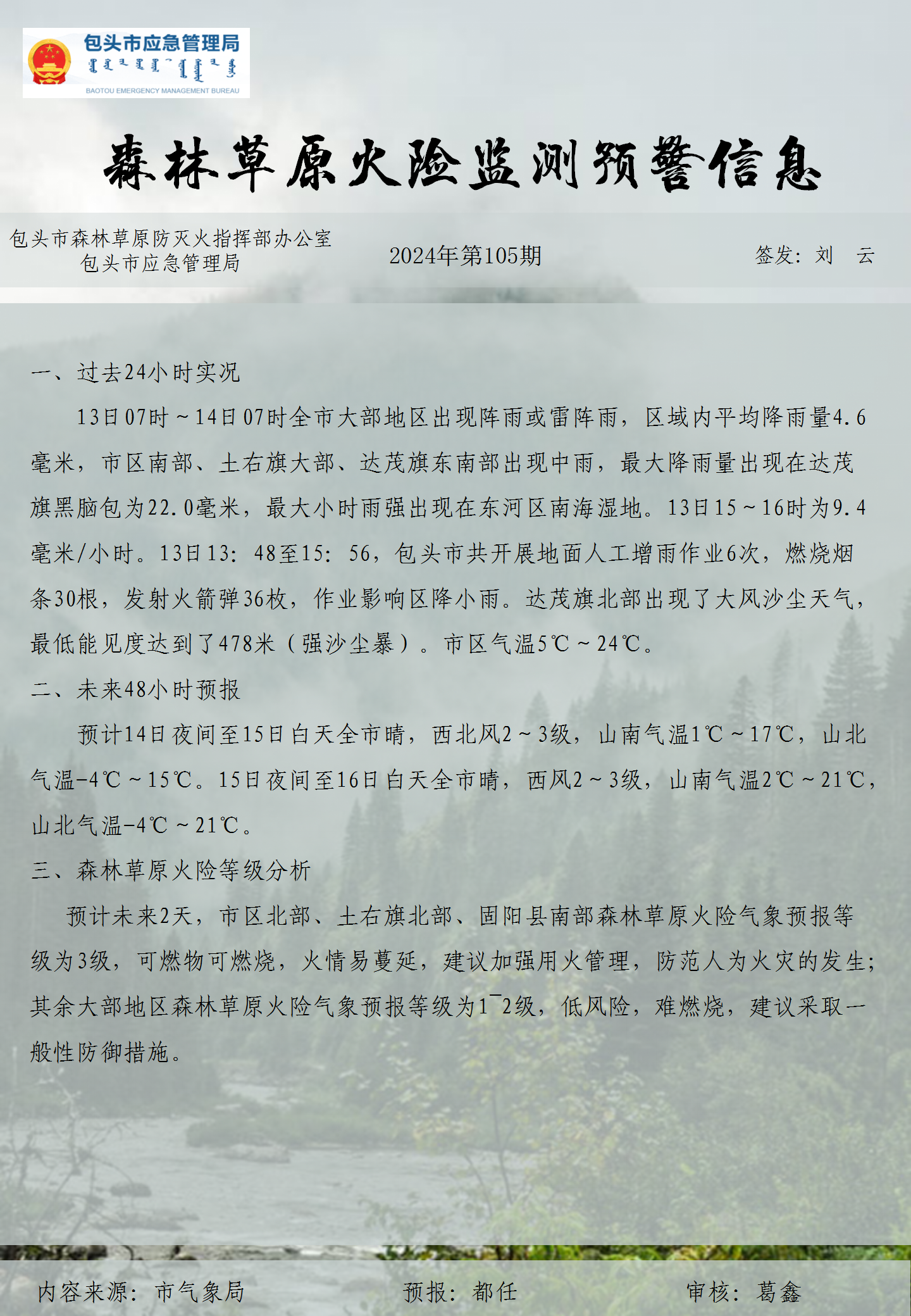 森林草原火险监测预警信息第105期
