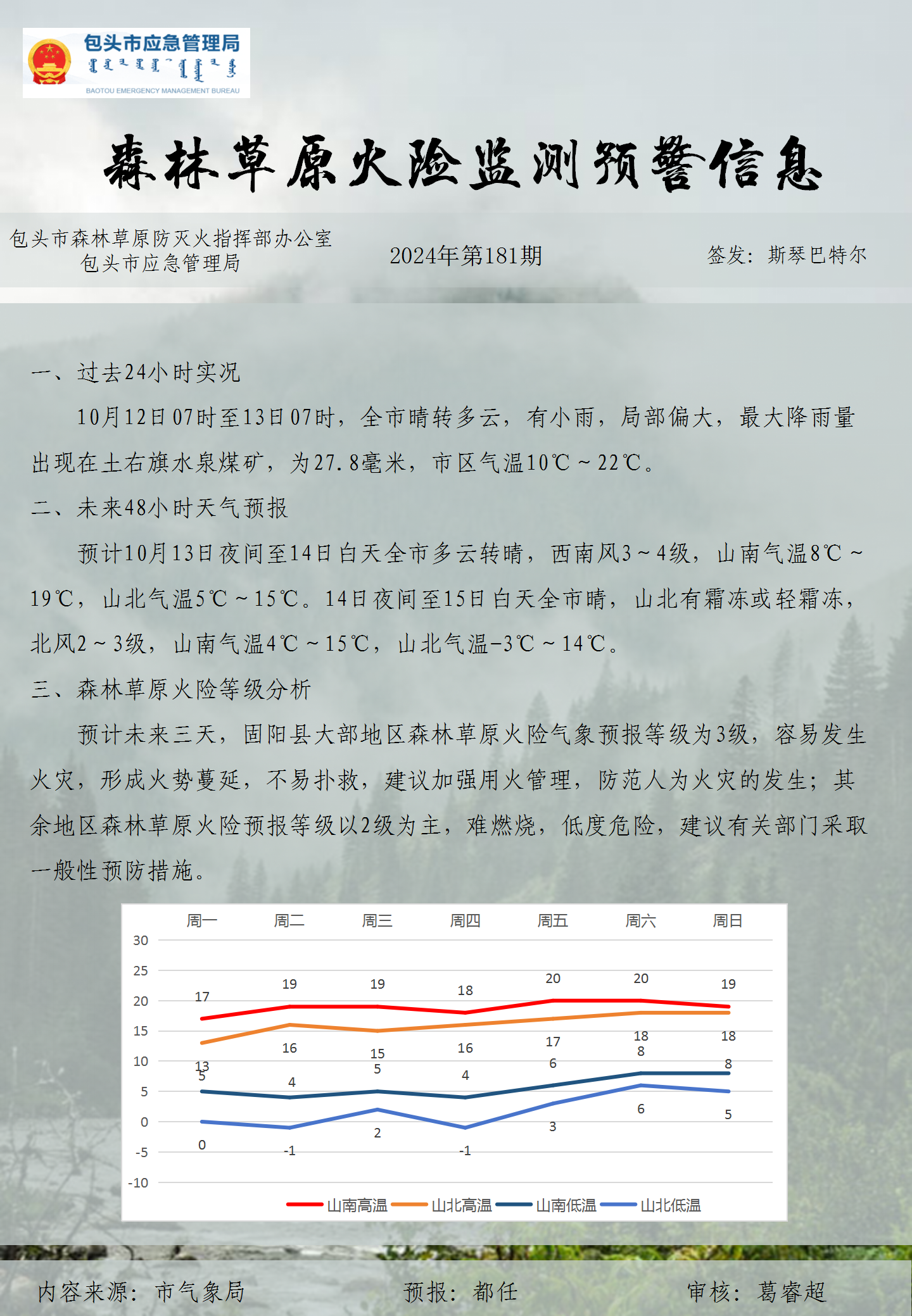 森林草原火险监测预警信息第181期