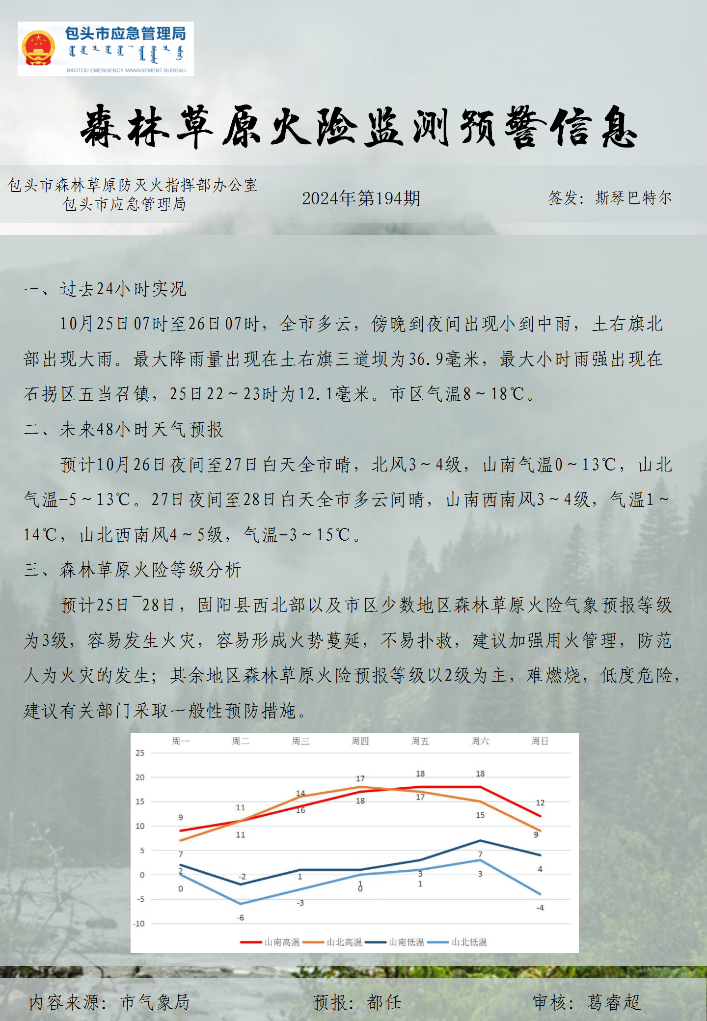 森林草原火险监测预警信息第194期