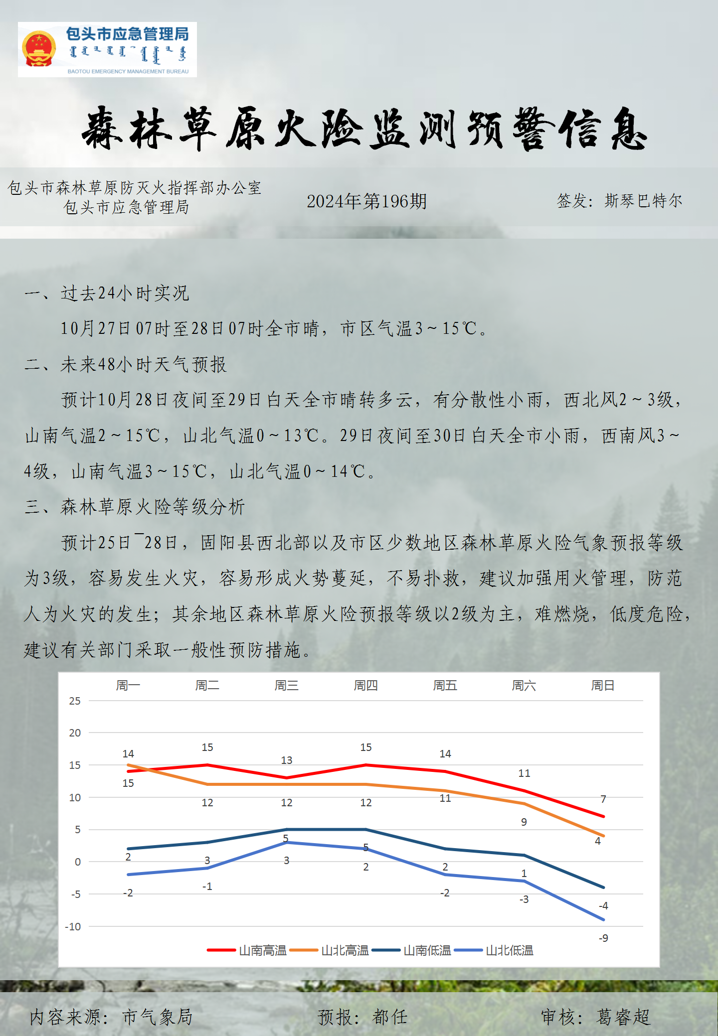 森林草原火险监测预警信息第196期