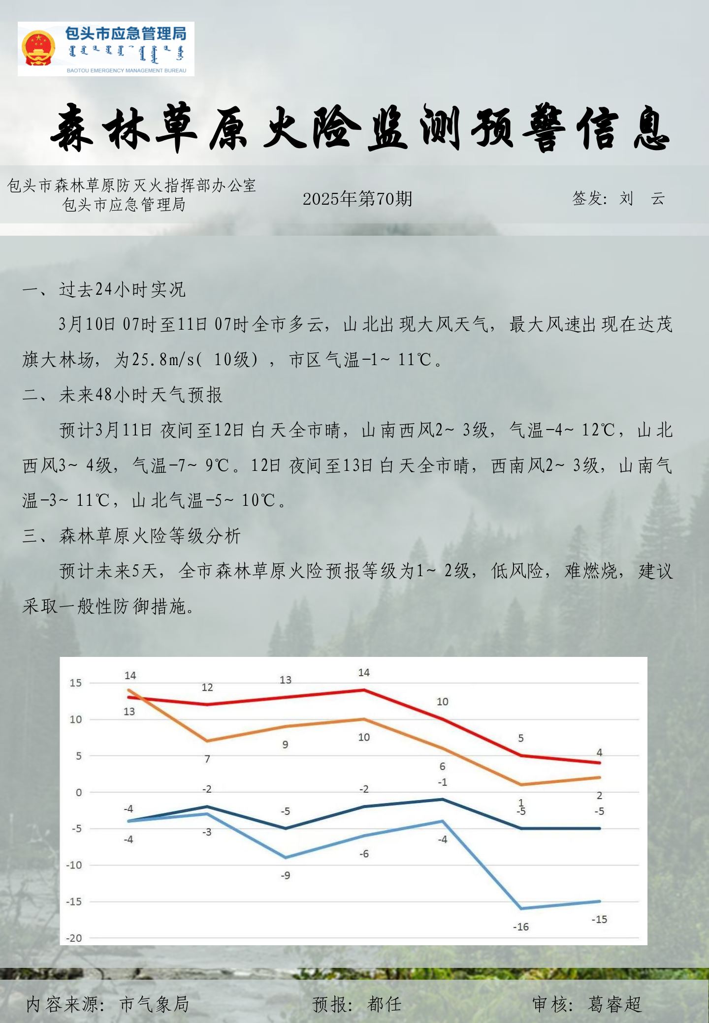 森林草原火险监测预警信息第70期