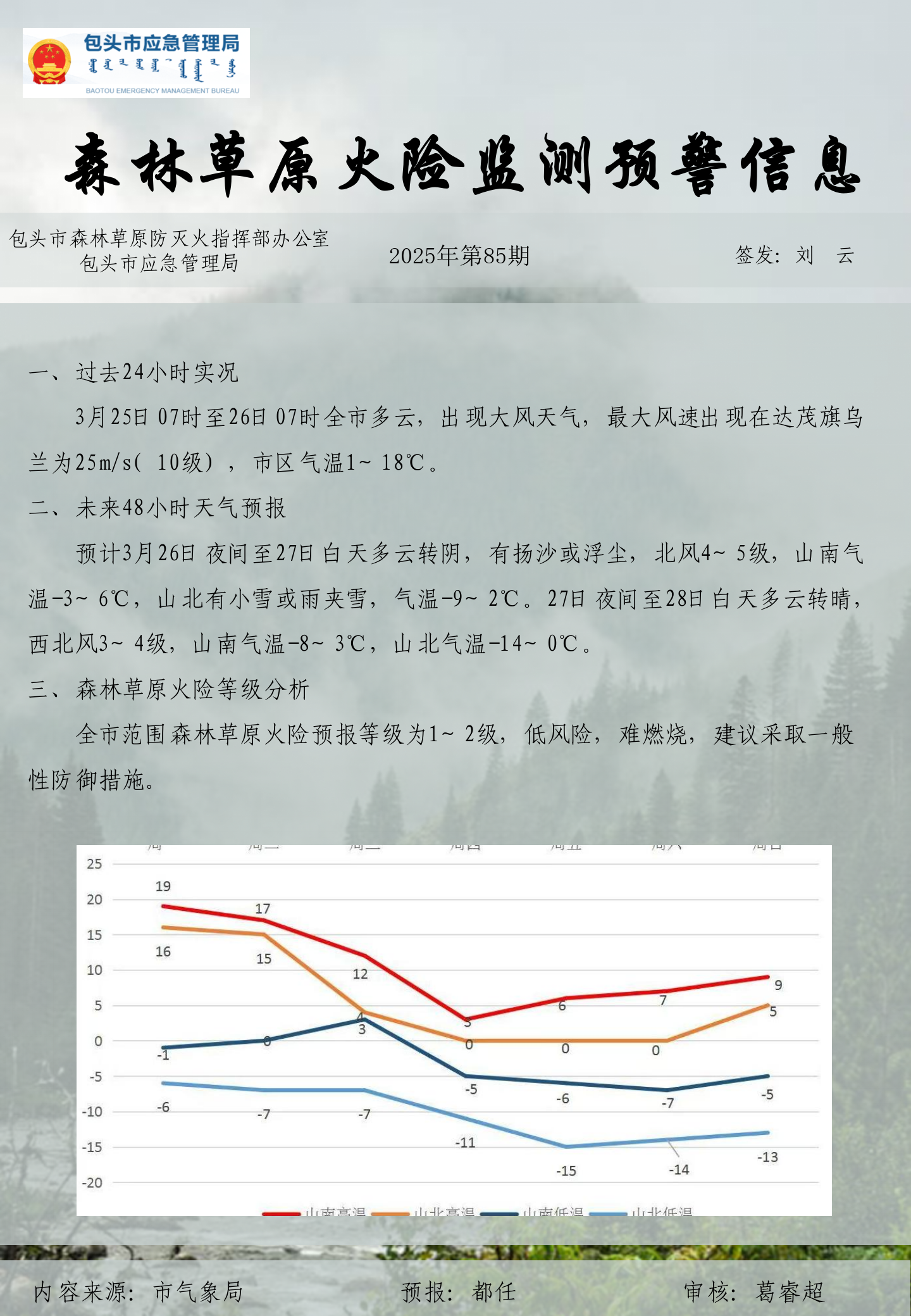 森林草原火险监测预警信息第85期