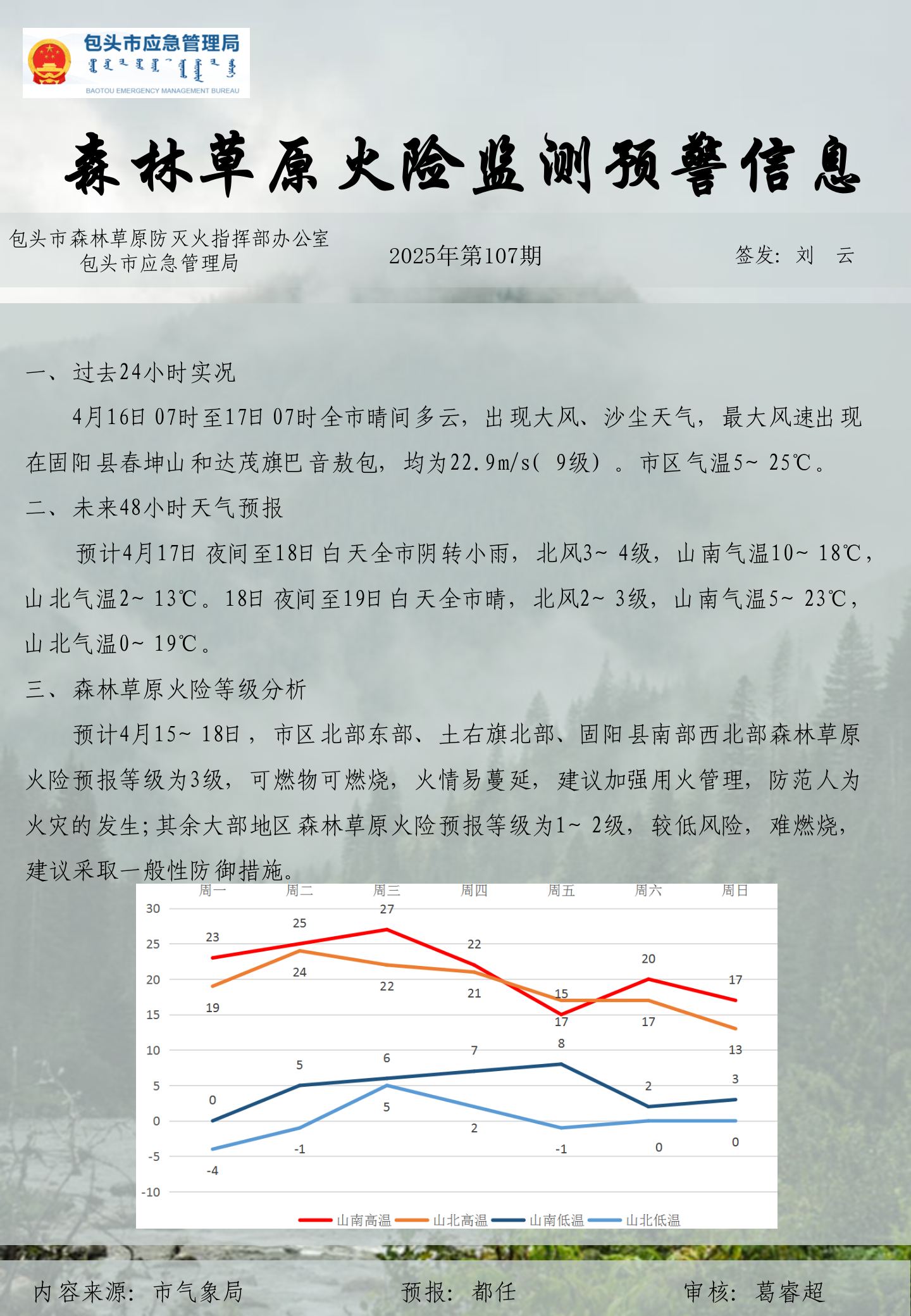 森林草原火险监测预警信息第107期