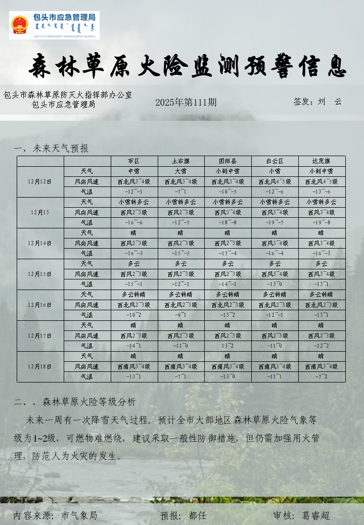 森林草原火险监测预警信息第111期