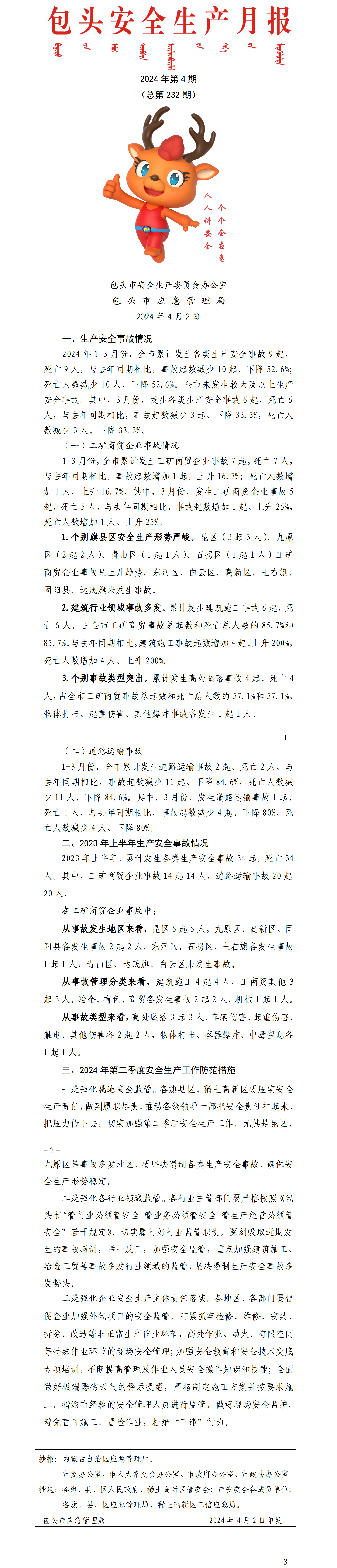 包头市安全生产月报(2024第四期)