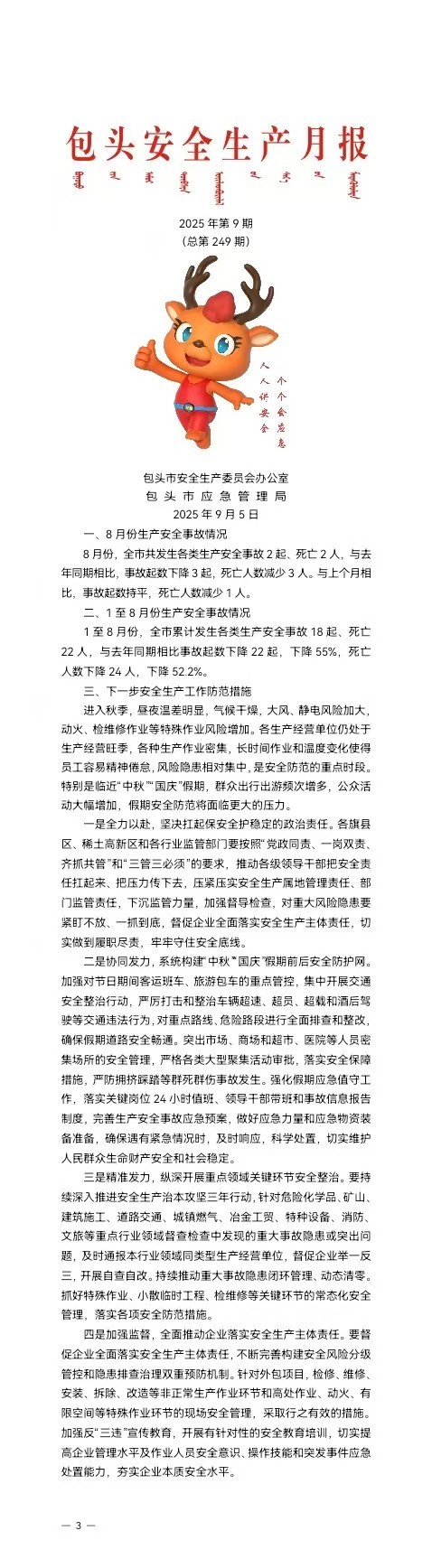 包头市安全生产月报(2025年·第九期)