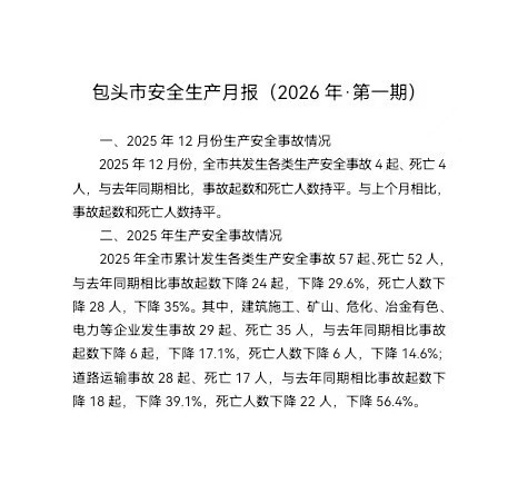 包头市安全生产月报(2026·第一期)