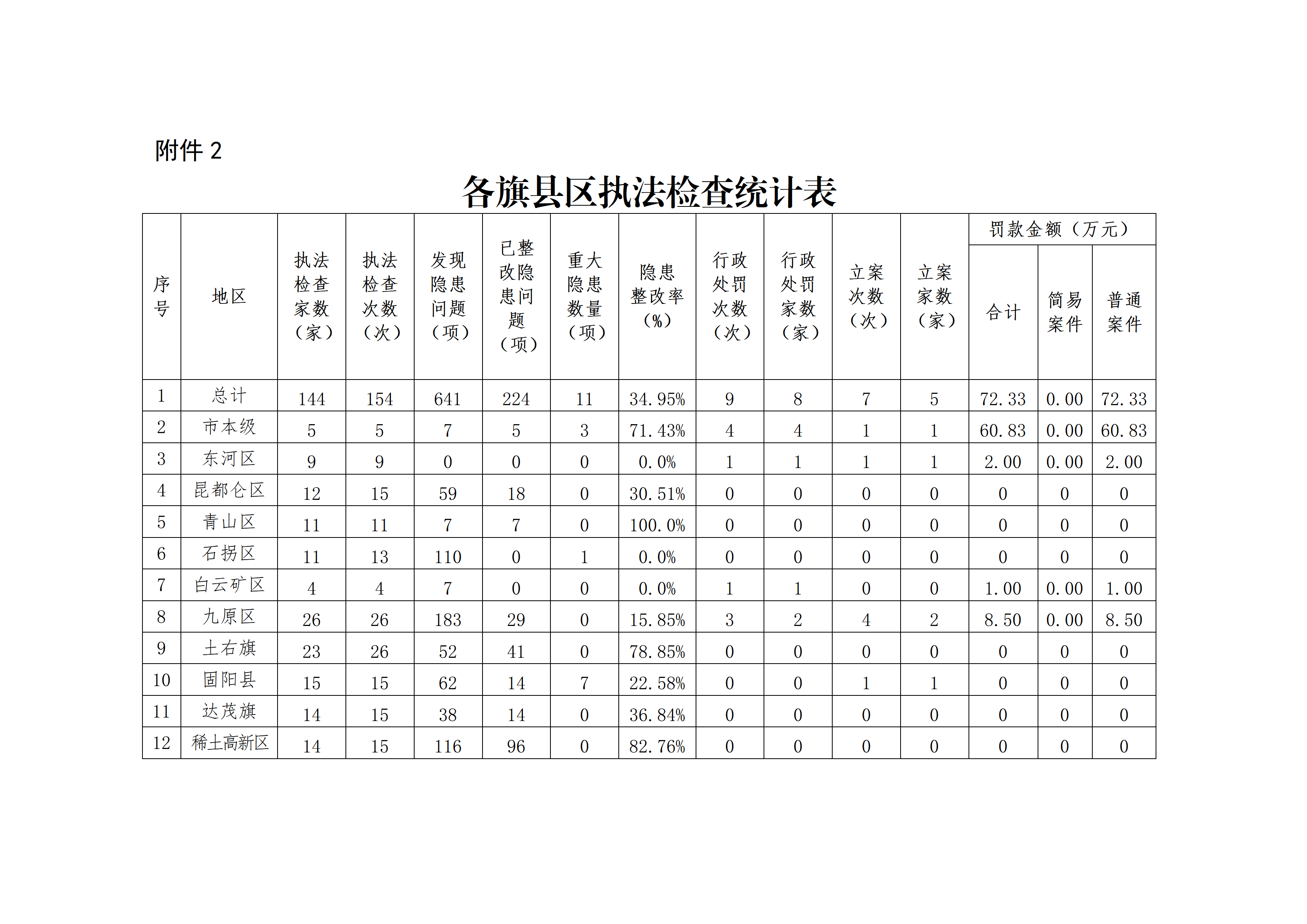 2.各旗县区执法检查统计表