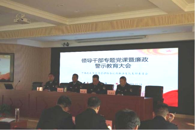 为进一步加强党风廉政建设,强化执法人员廉洁自律风险意识,按照全市“树立有解思维、提高工作标准、争创一流业绩”专题活动和自治区应急管理厅“转观念、强作风、严管理、重落实、提效能、树形象”学习实践活动要求,11月14日,中共包头市应急管理综合行政执法支队党支部委员会组织开展领导干部专题党课暨廉政警示教育大会。