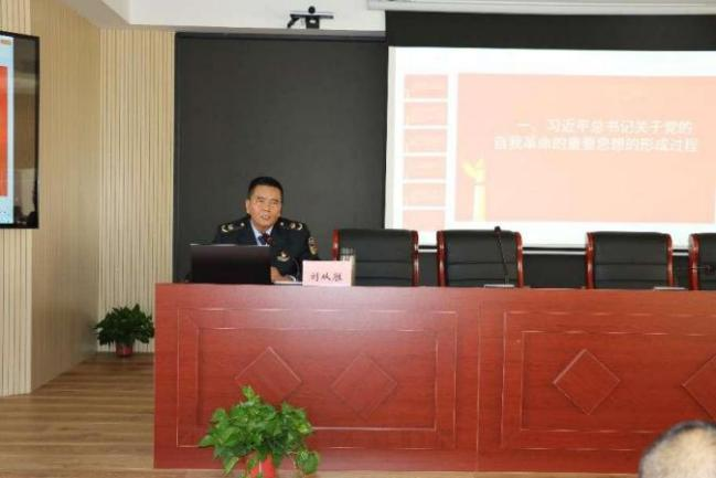 局分管领导围绕习近平总书记关于党的自我革命的重要思想的形成过程、我们党为什么要自我革命、我们党为什么能自我革命、我们党怎样推进自我革命等方面,结合自身工作经验,深入浅出地讲授了一堂意义非凡的廉政教育专题党课,为全体执法人员带来了一次深刻的思想洗礼。