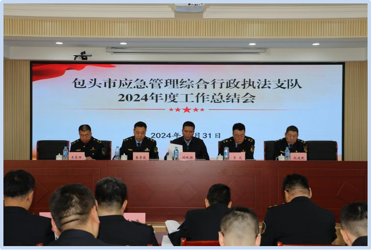 2024年12月31日上午,市应急管理综合行政执法支队组织召开2024年度工作述职汇报会,深度复盘全年应急执法工作,为支队全体执法人员提供了相互学习、携手共进的难得契机。通过科队负责人总结汇报、支队长评价、分管领导点评,从工作业绩、队伍建设、创新举措以及未来展望等多个维度,全方位展现了过去一年各自领域的工作风采与奋斗足迹。同时通过总结讲评,我们深知肩上责任之重,进一步激发了全体执法人员砥砺奋进的决心和信心。