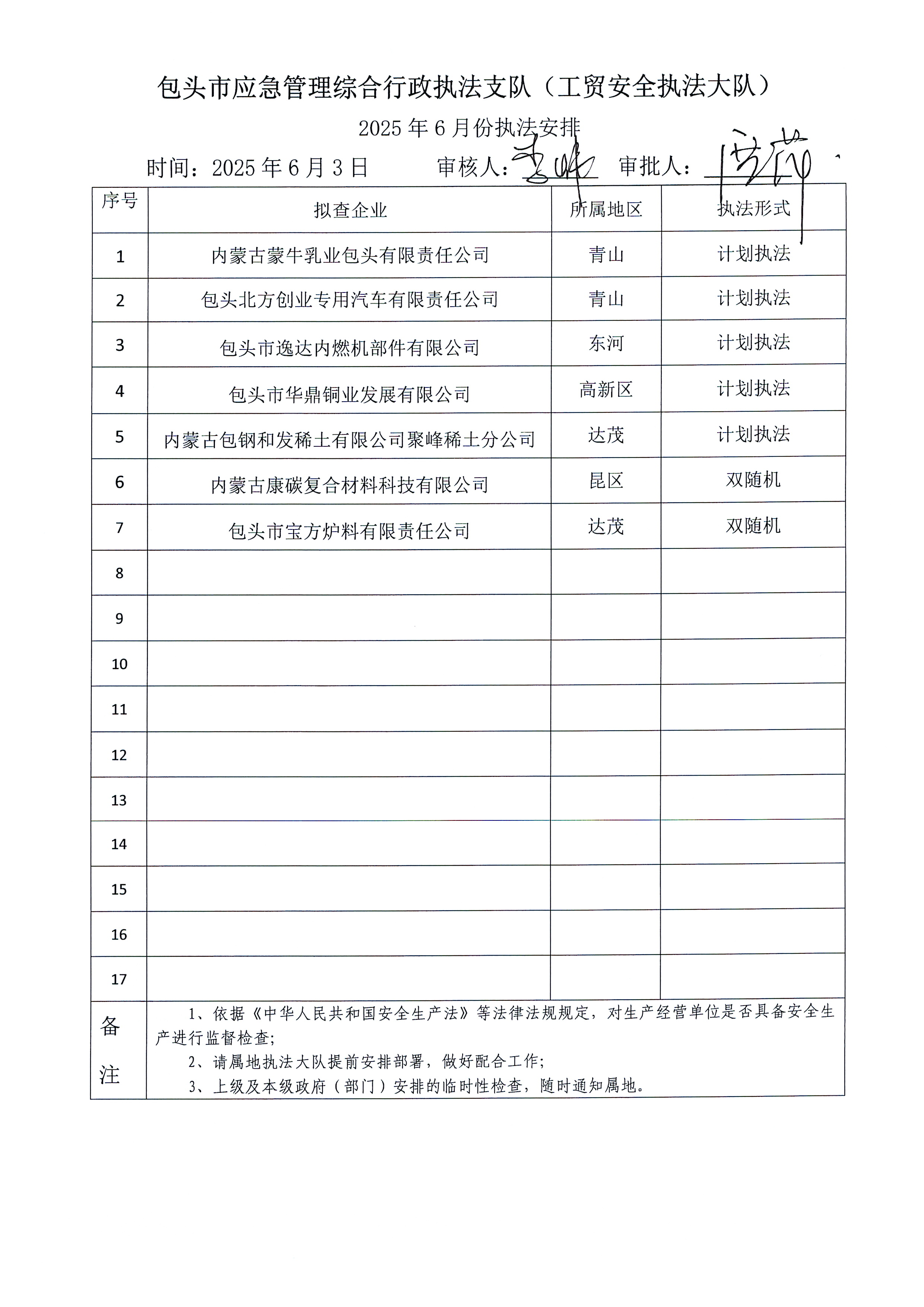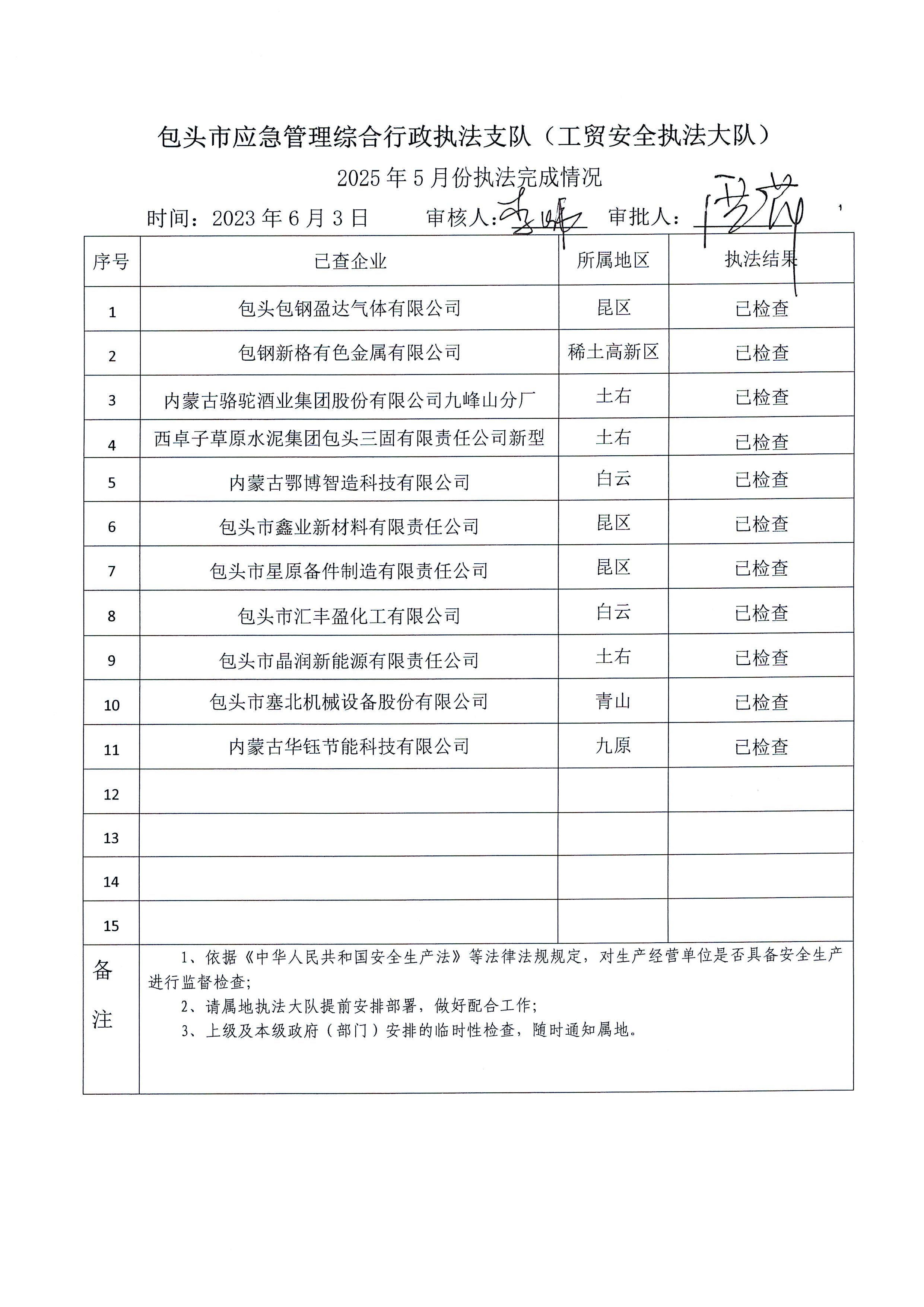 工贸大队2025年5月执法检查完成情况及2025年6月执法检查安排公示