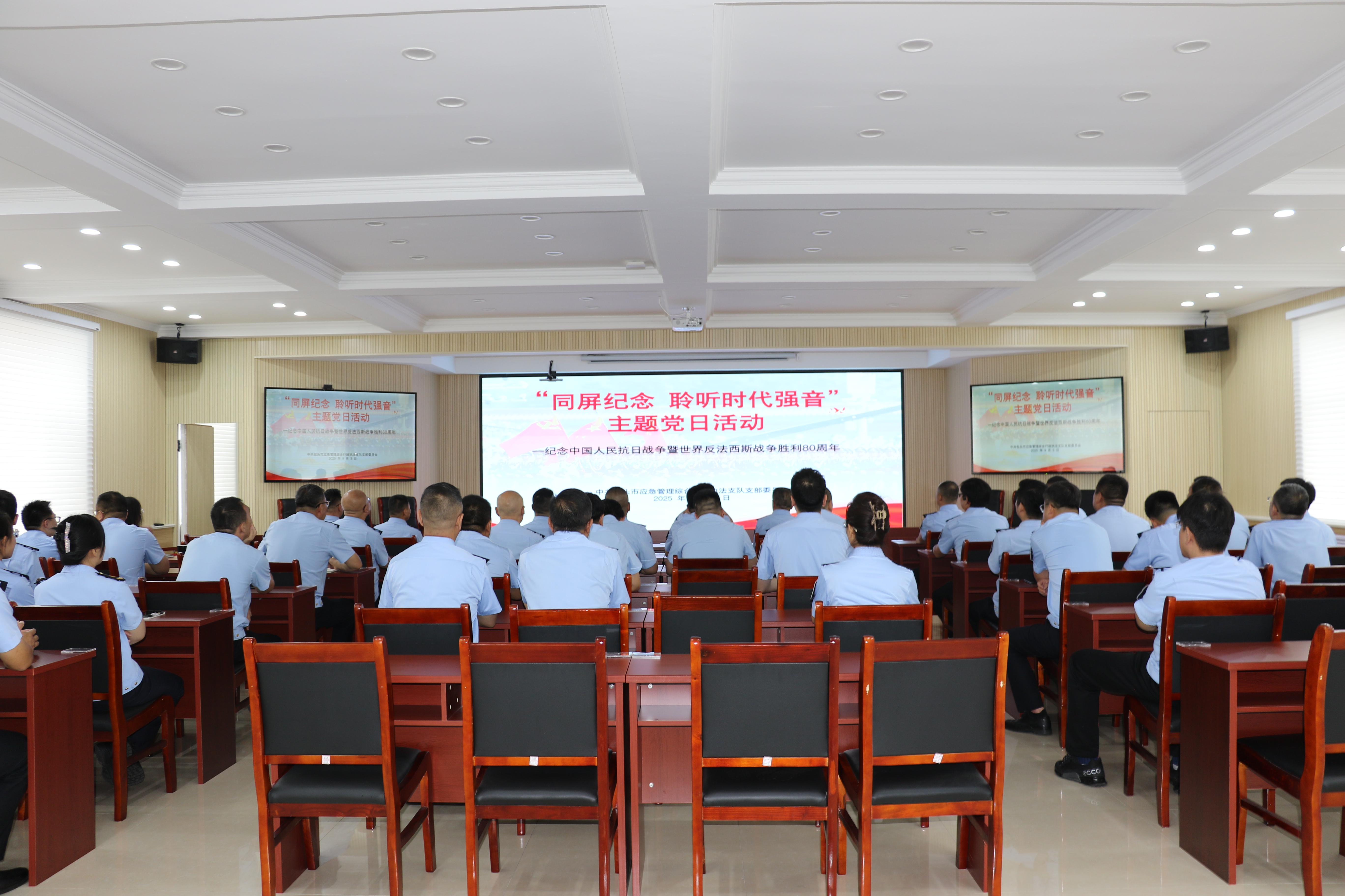 为纪念中国人民抗日战争暨世界反法西斯战争胜利80周年,9月3日上午,包头市应急管理综合行政执法支队党支部组织开展“同屏纪念 聆听时代强音”主题党日活动,旨在铭记抗战历史,缅怀革命先烈,弘扬爱国主义精神与抗战精神,引导全体人员汲取奋进力量,坚定理想信念。