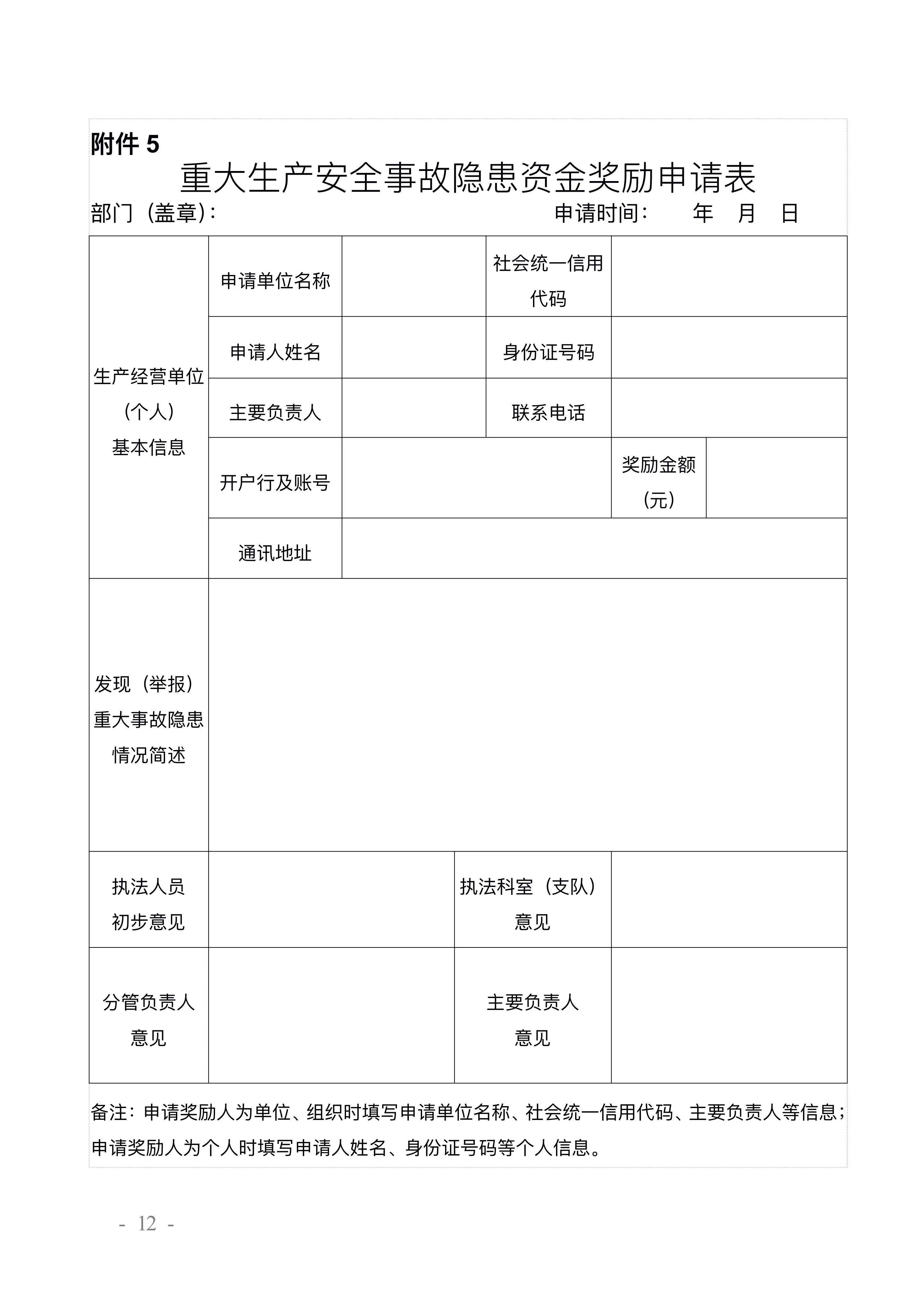5.重大生产安全事故隐患资金奖励申请表
