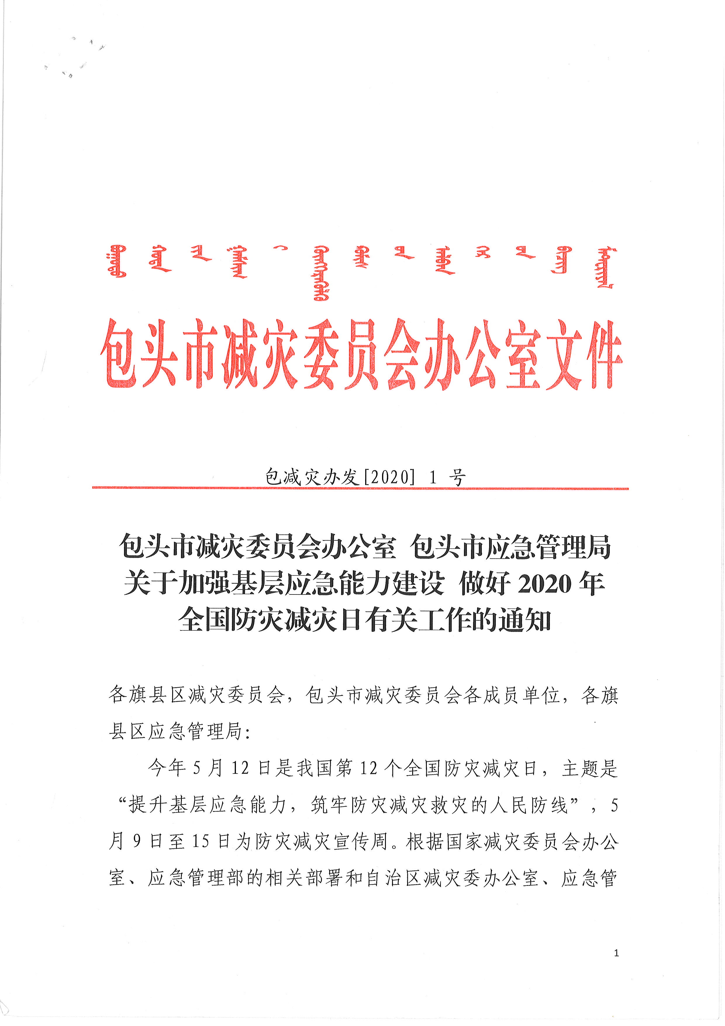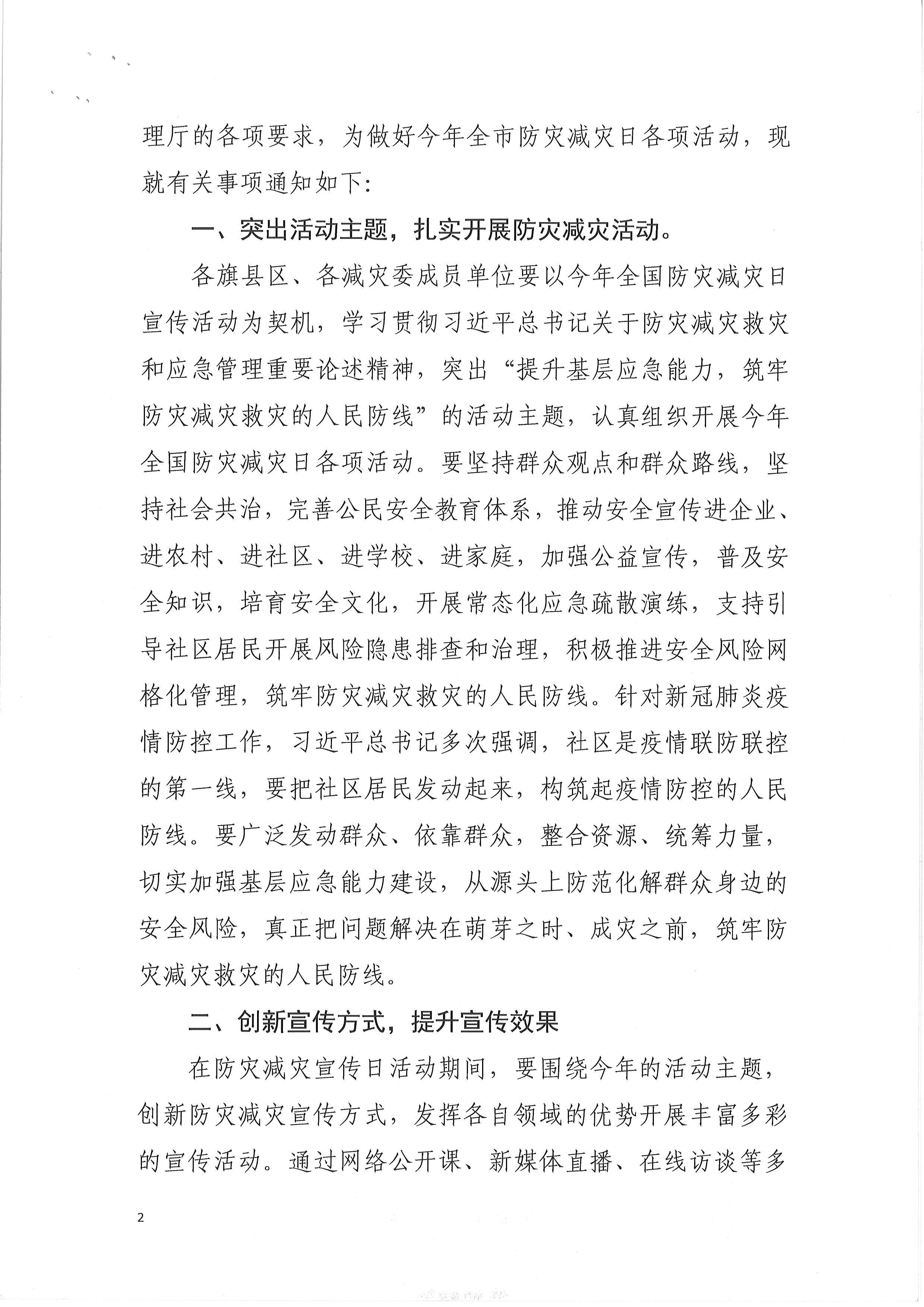 包头市减灾委员会办公室 包头市应急管理局关于加强基层应急能力建设 做好2020年全国防灾减灾日有关工作的通知