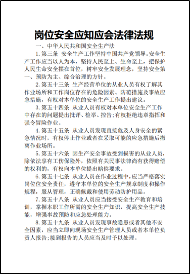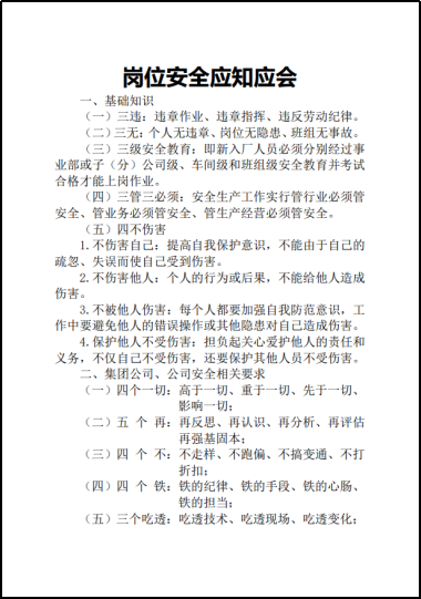宣传安全生产应知应会知识,及公司各主要安全生产要求。明确岗位人员安全生产的法定责任及义务。