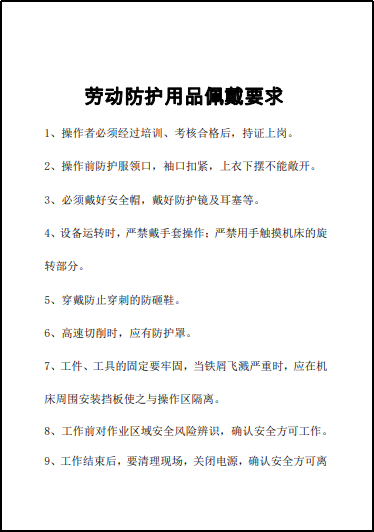 明确岗位作业过程中的劳动防护用品佩戴标准及佩戴要求。