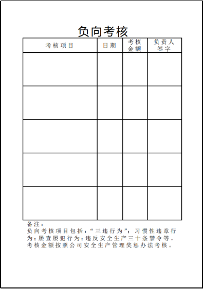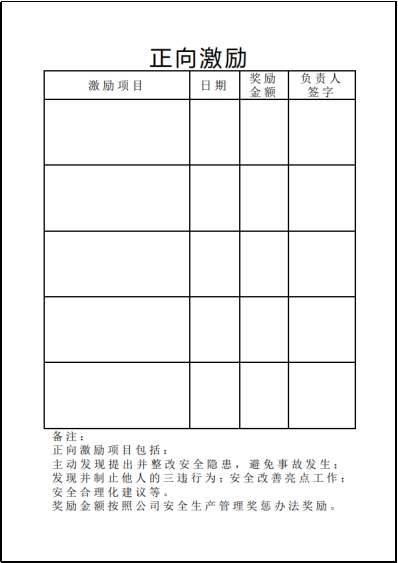 记录员工接受的临时性安全生产培训(如违章作业后对其开展的警示教育,日常培训教育不在此记录)以及员工受到的正向激励与负向考核情况。
