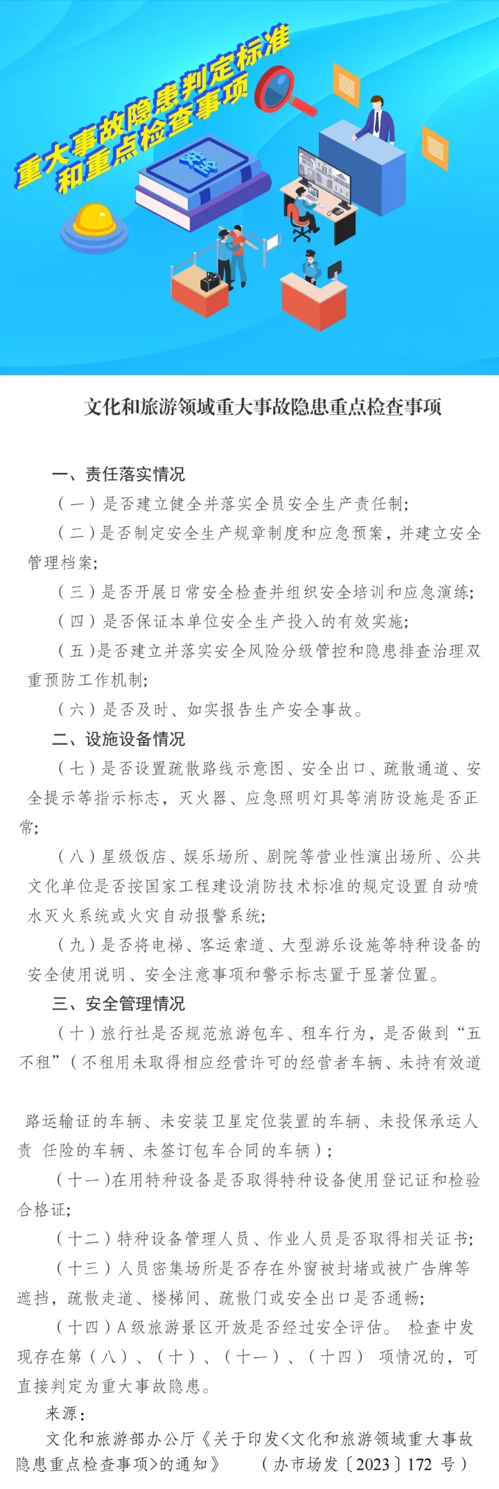 重大事故隐患重点检查事项、判定清单(文化和旅游领域、医疗机构)