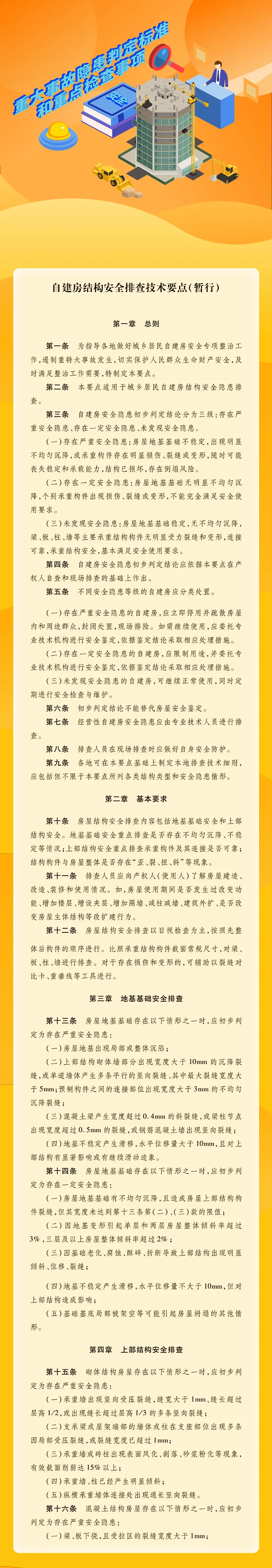 房屋市政工程生产安全重大事故隐患判定标准、自建房结构安全排查技术要点